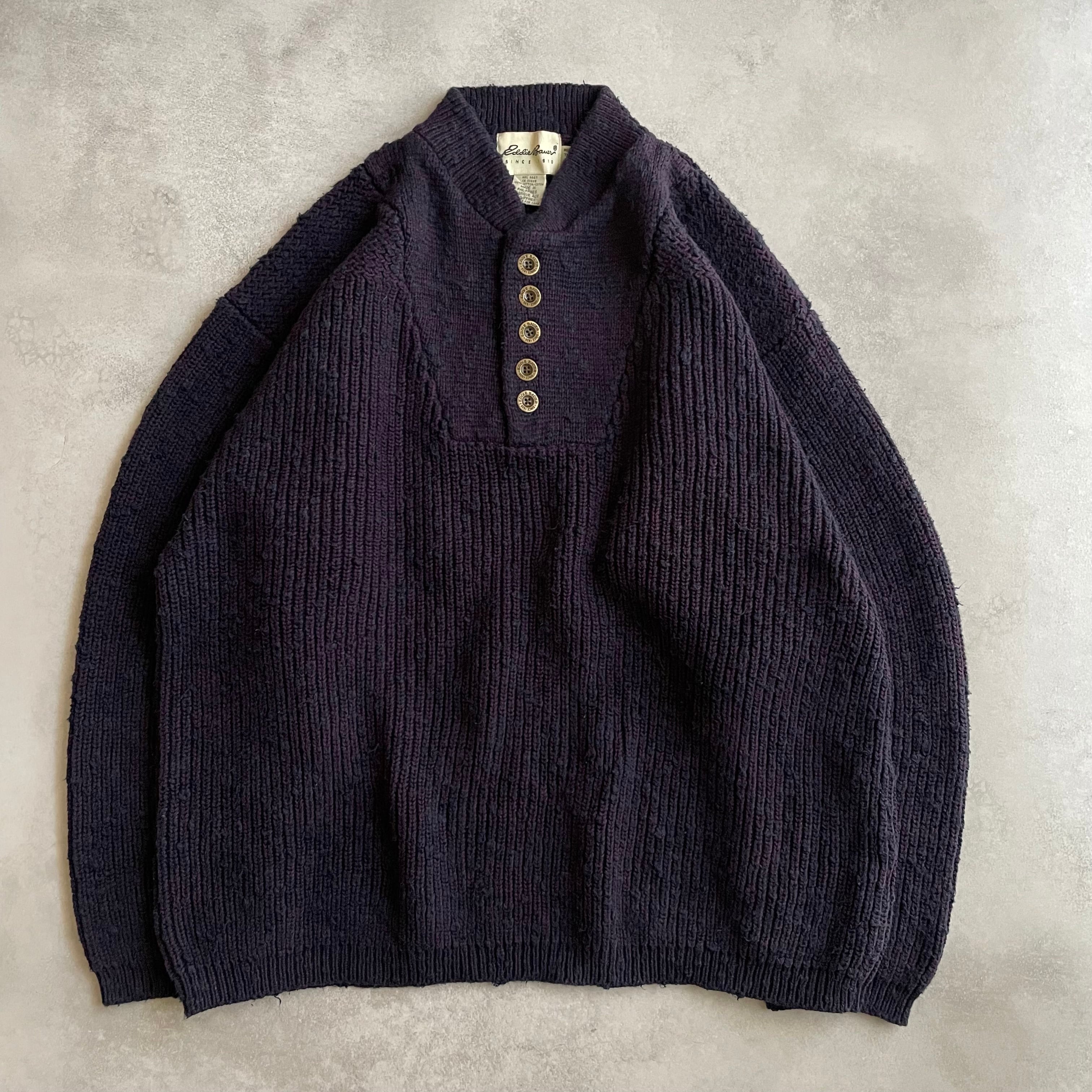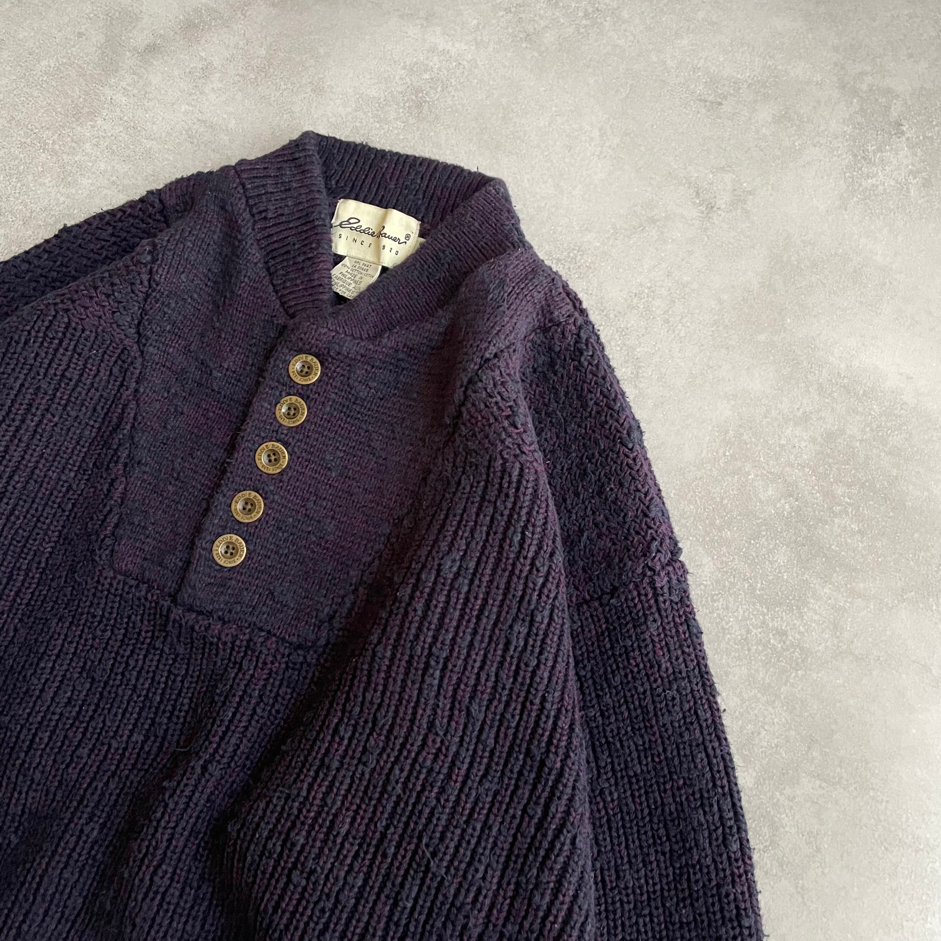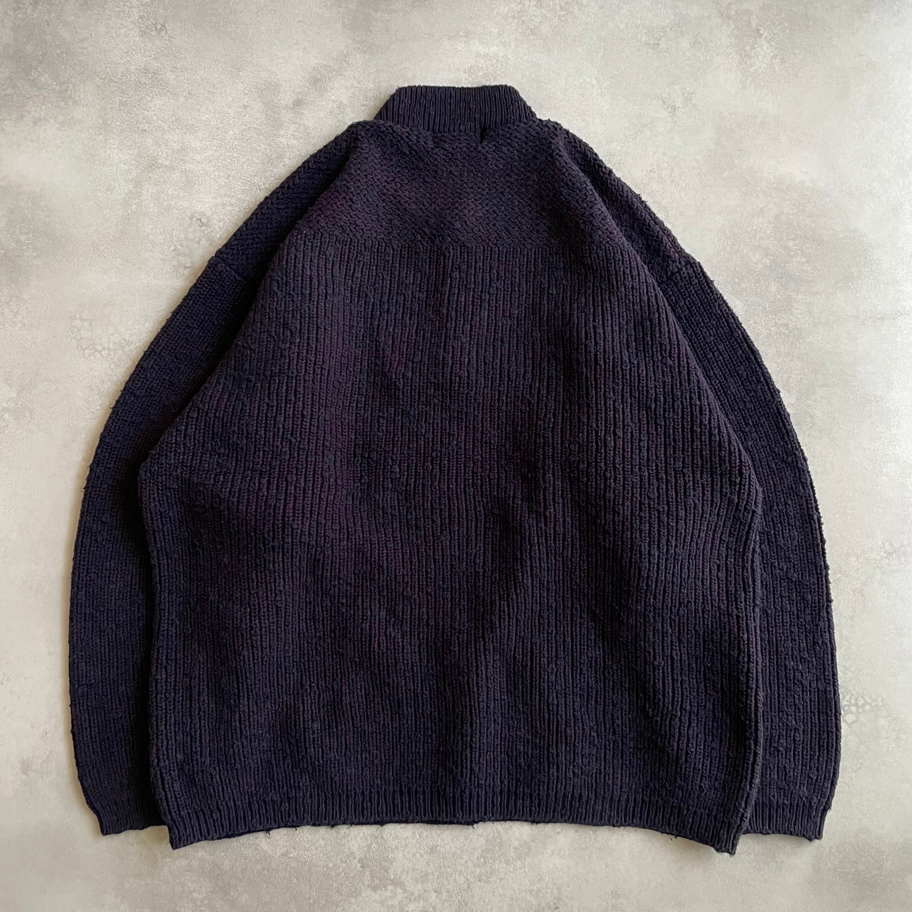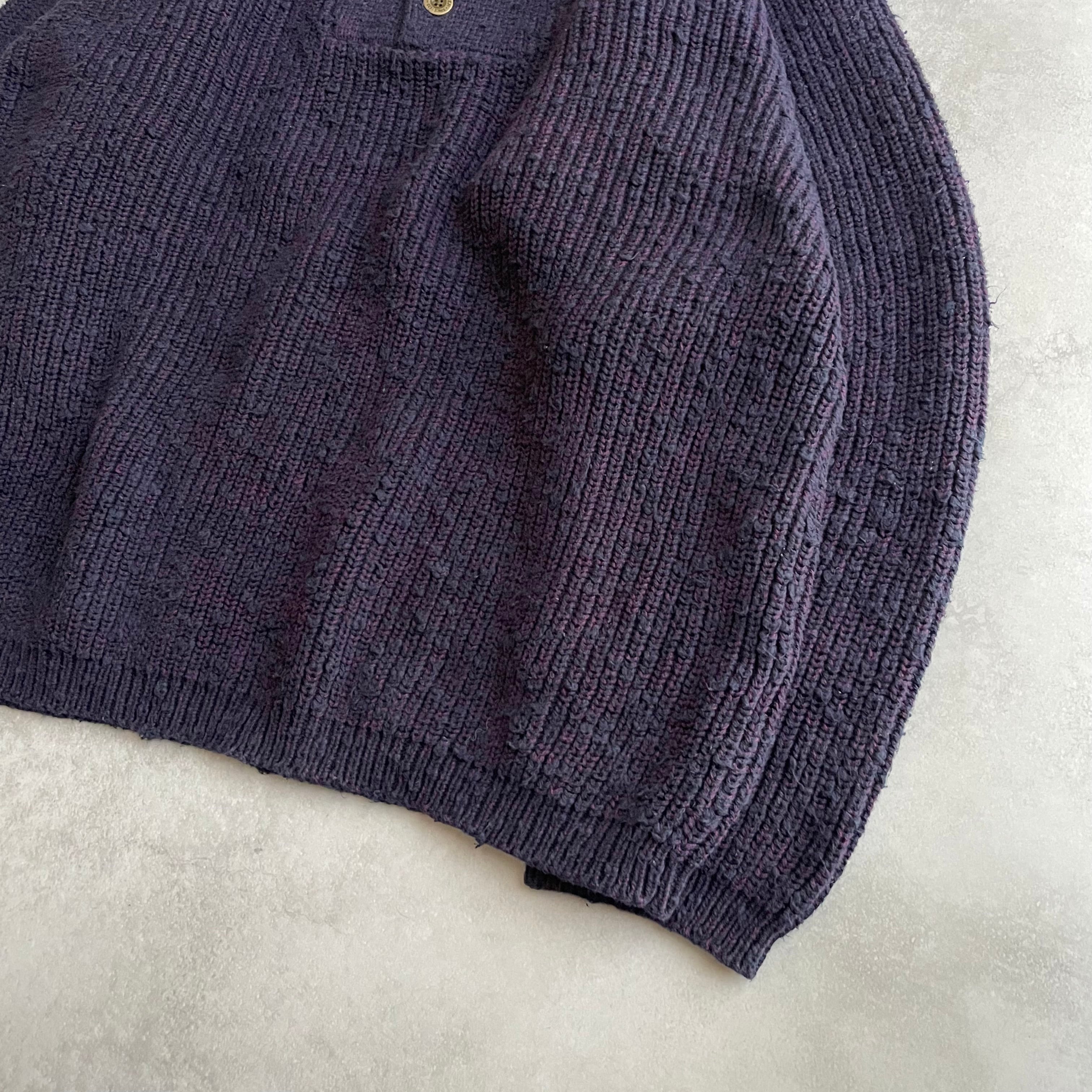ネイビーとパープルっぽいカラーが混ざったミックスカラーニットで、人気のヘンリーネック仕様