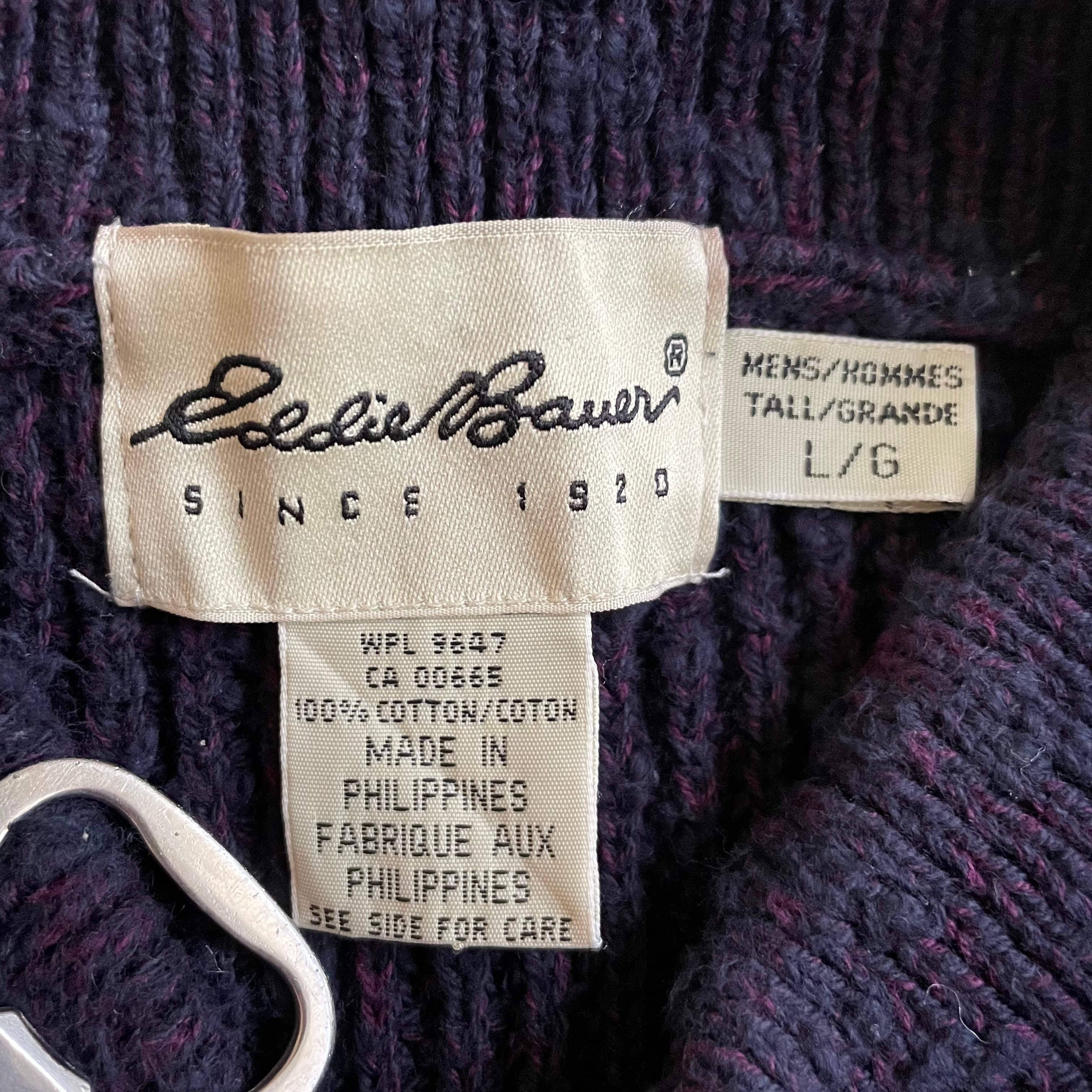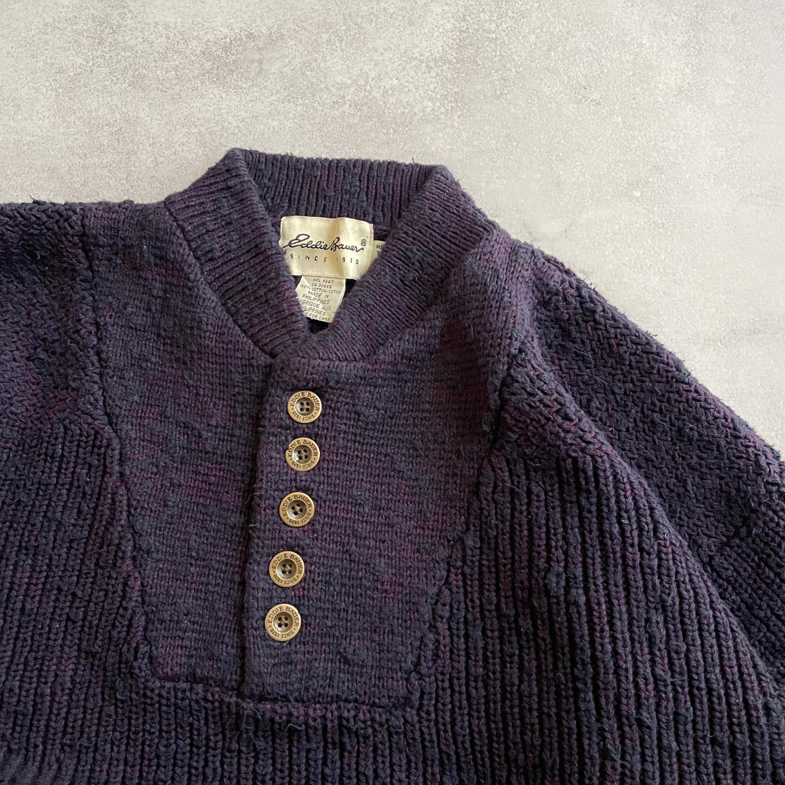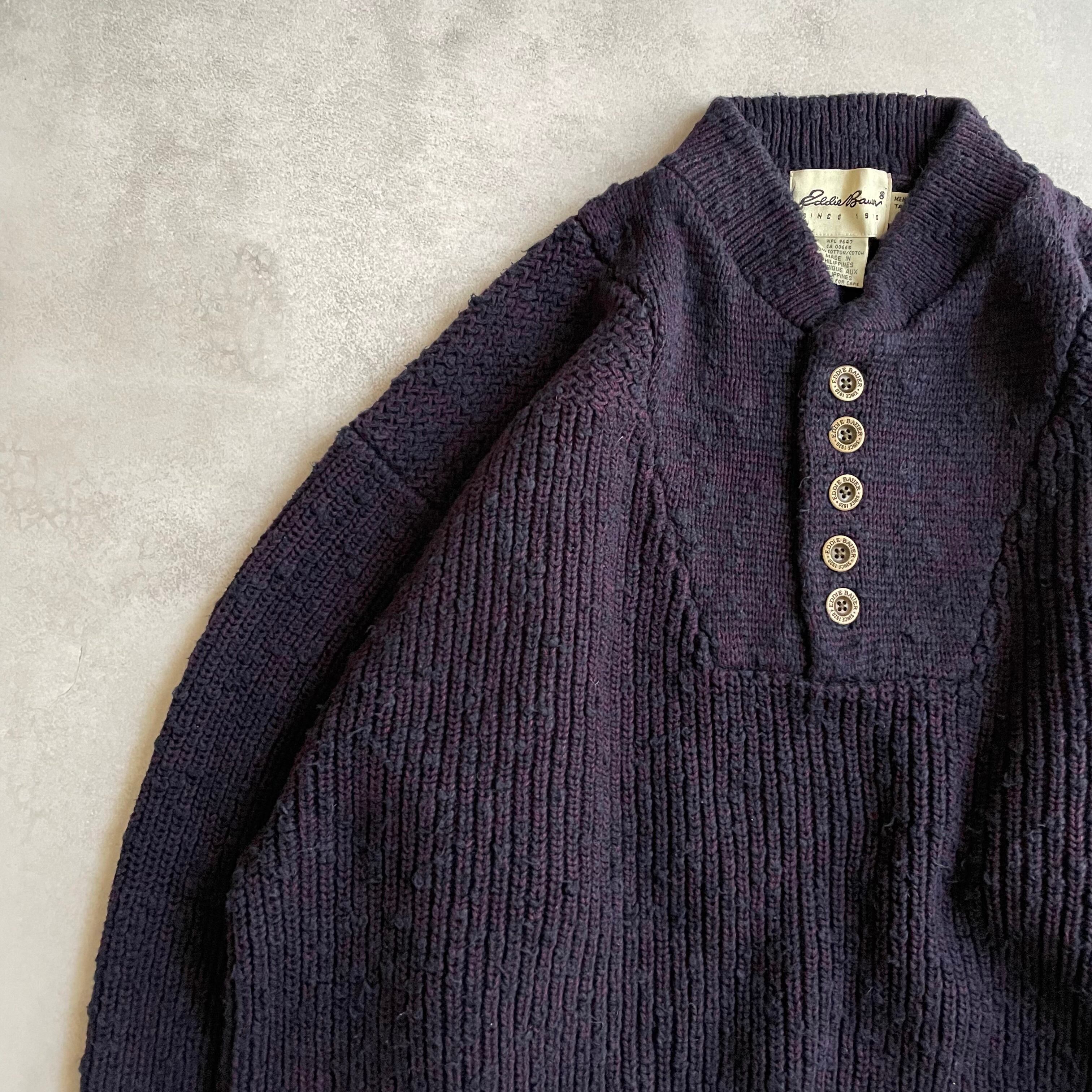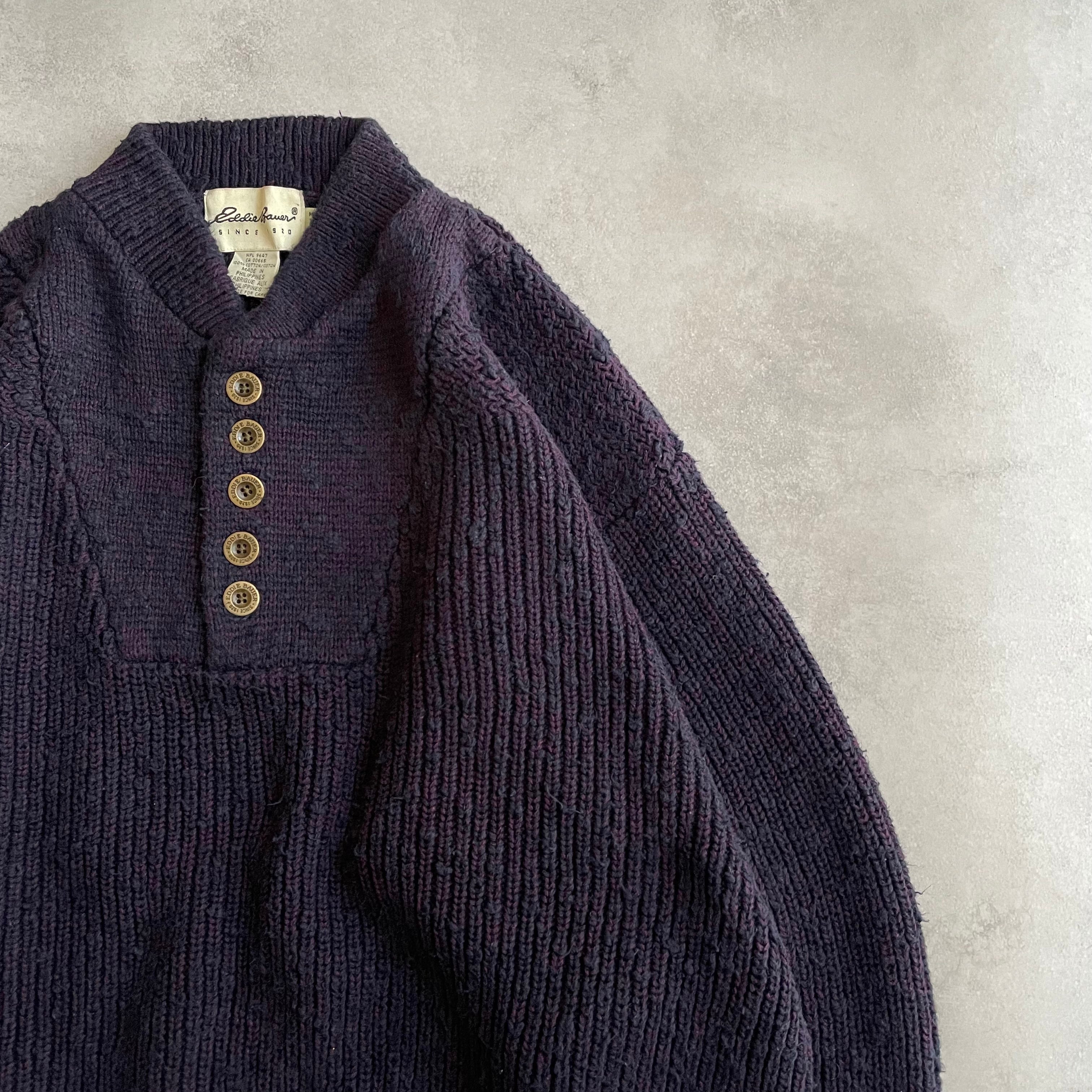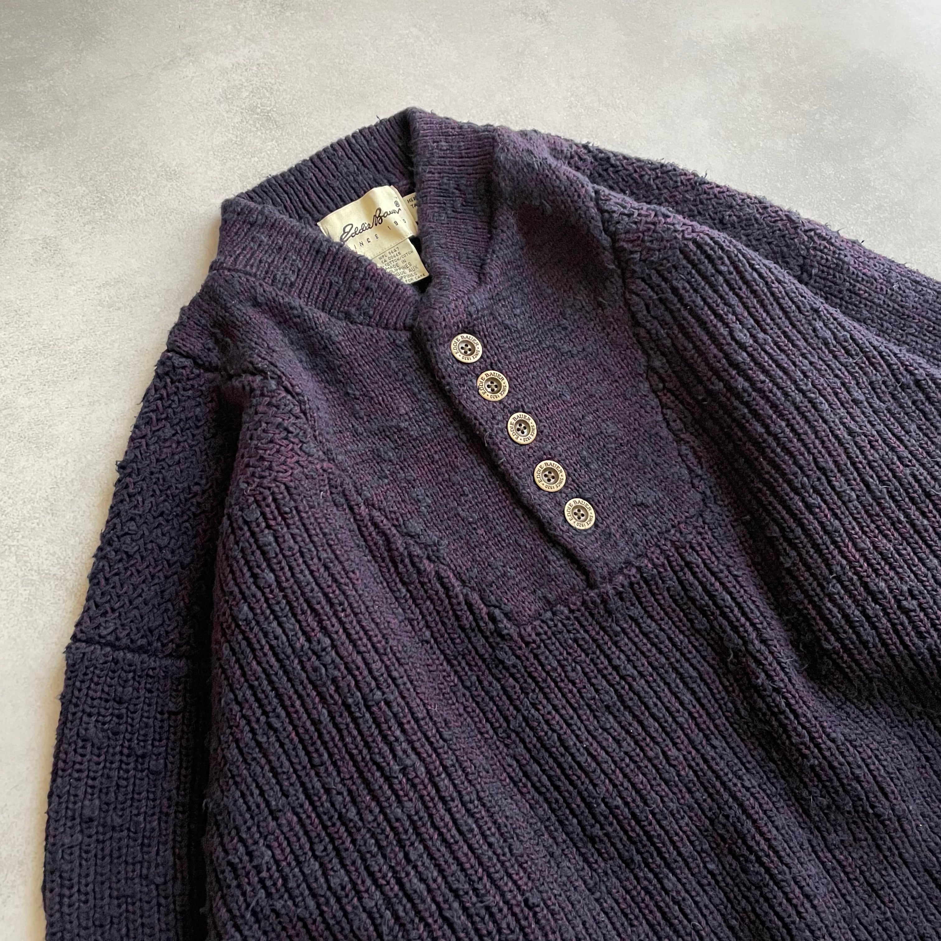 ネイビーとパープルっぽいカラーが混ざったミックスカラーニットで、人気のヘンリーネック仕様