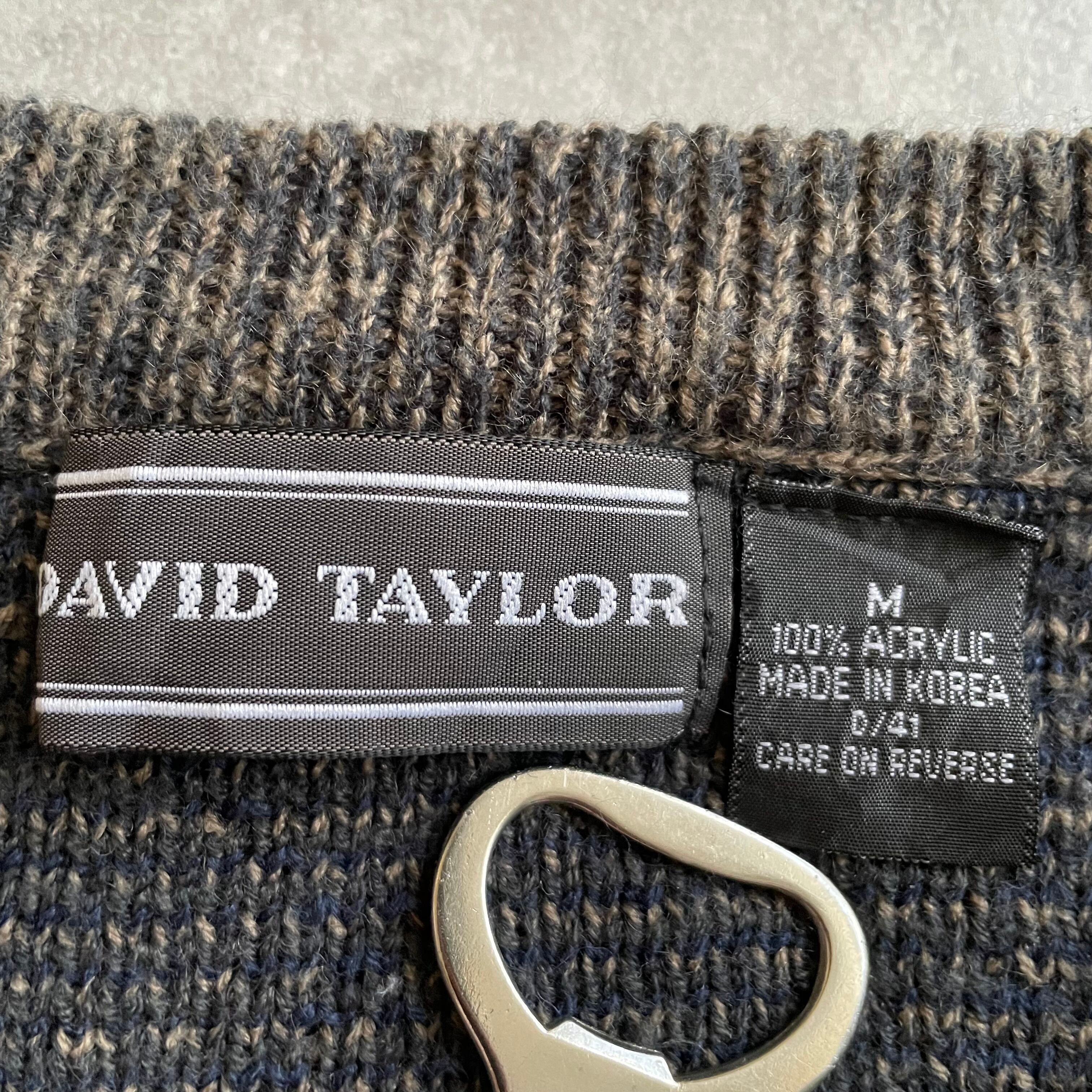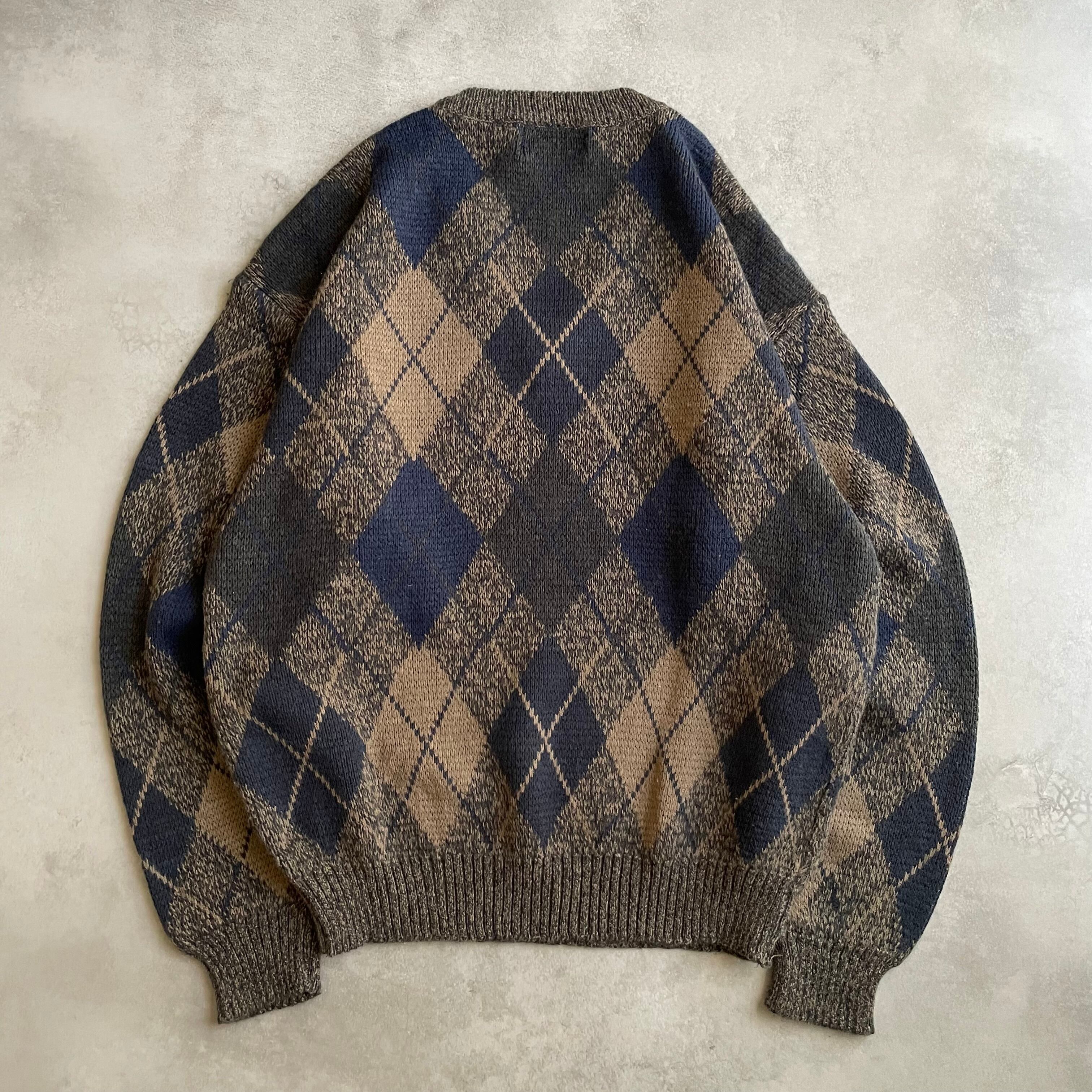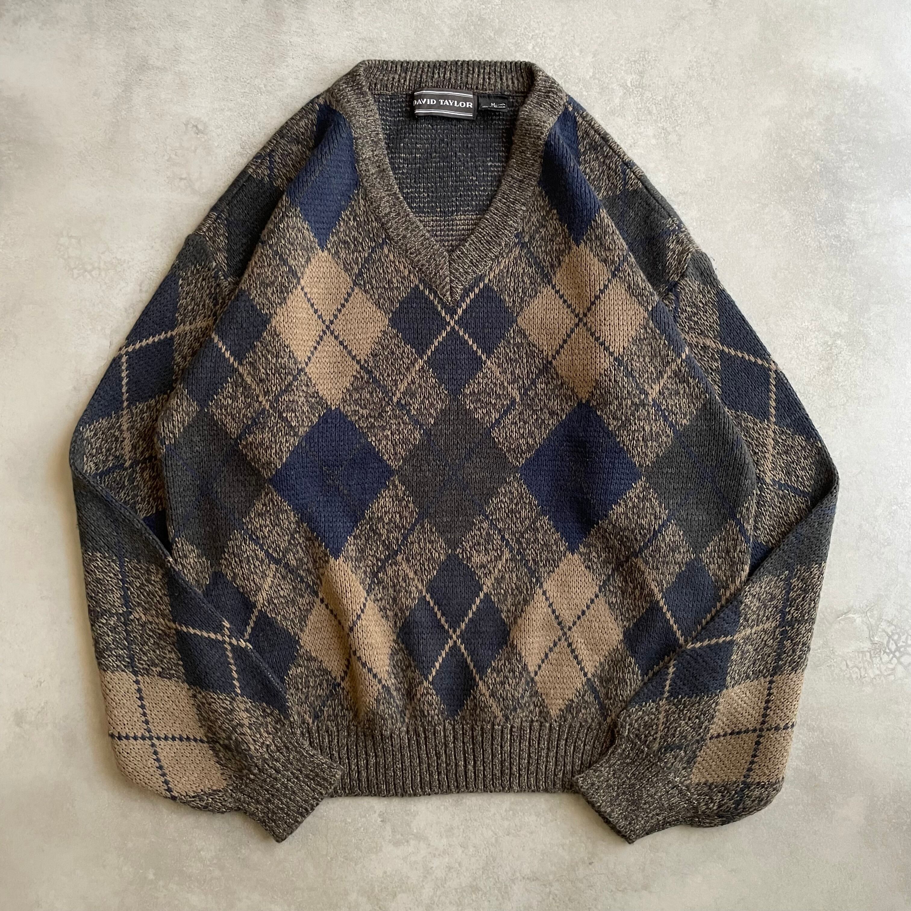 90s David Taylor V neck Argyle pattern acrylic sweater