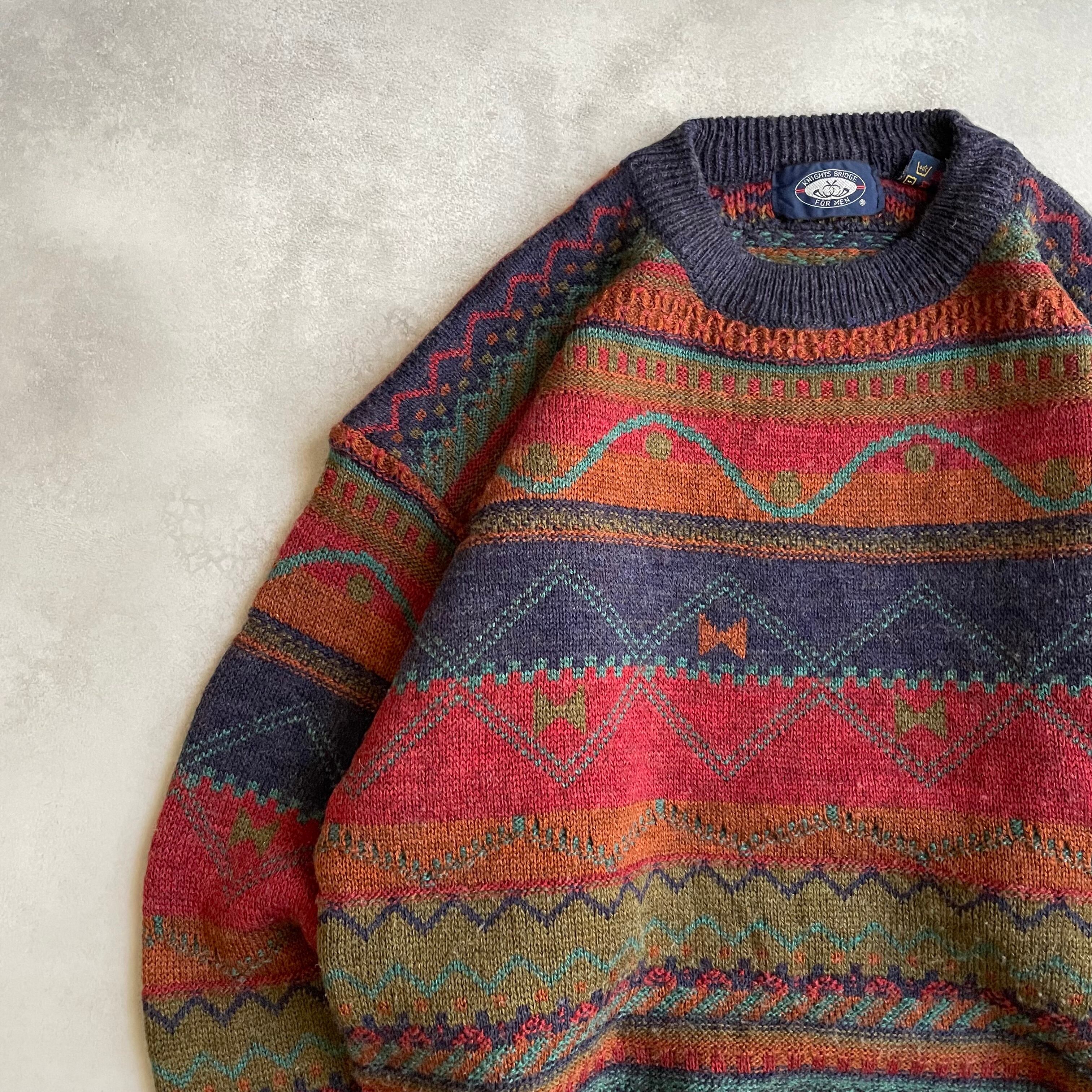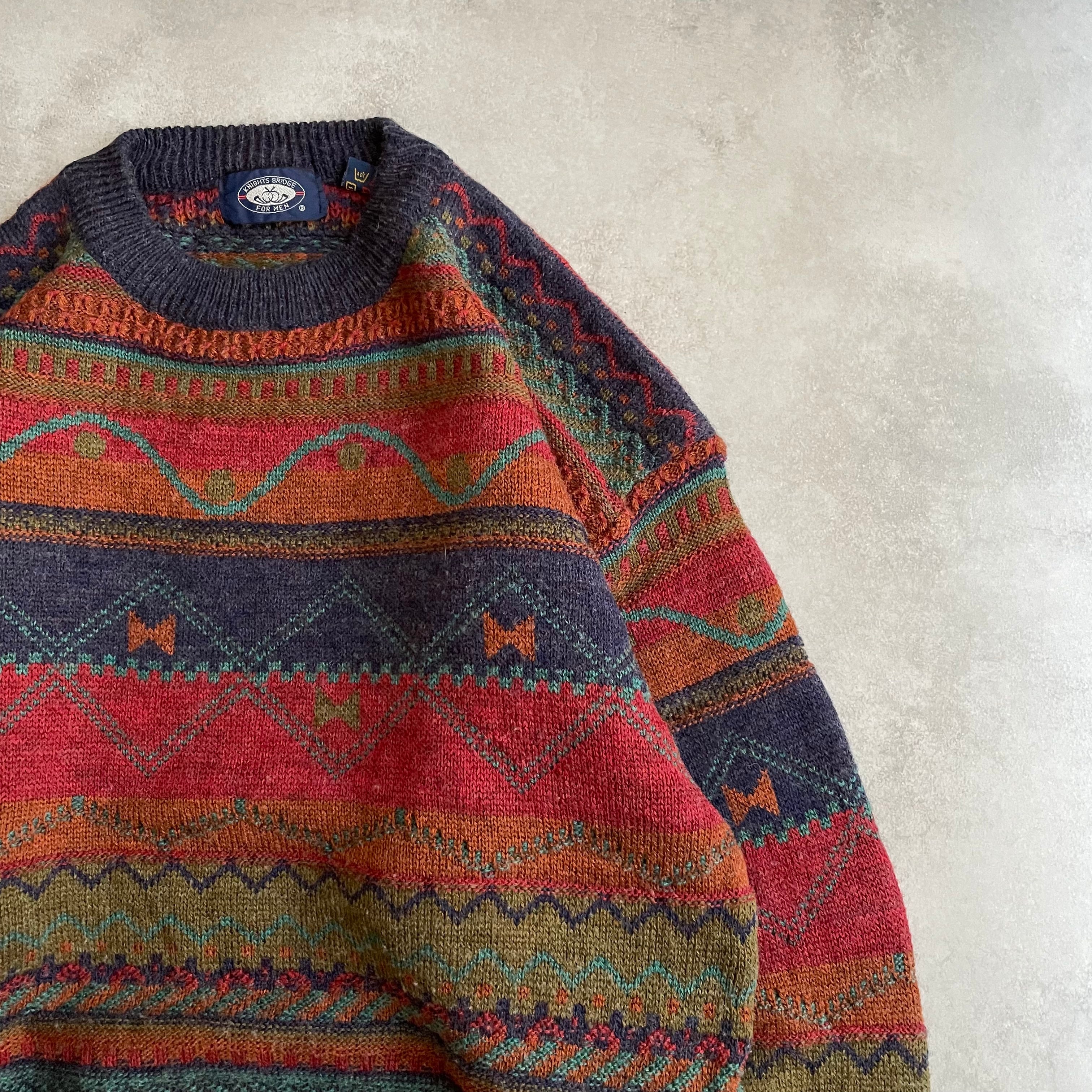 様々なカラー、デザインで構成されたウール混のアクリルニット