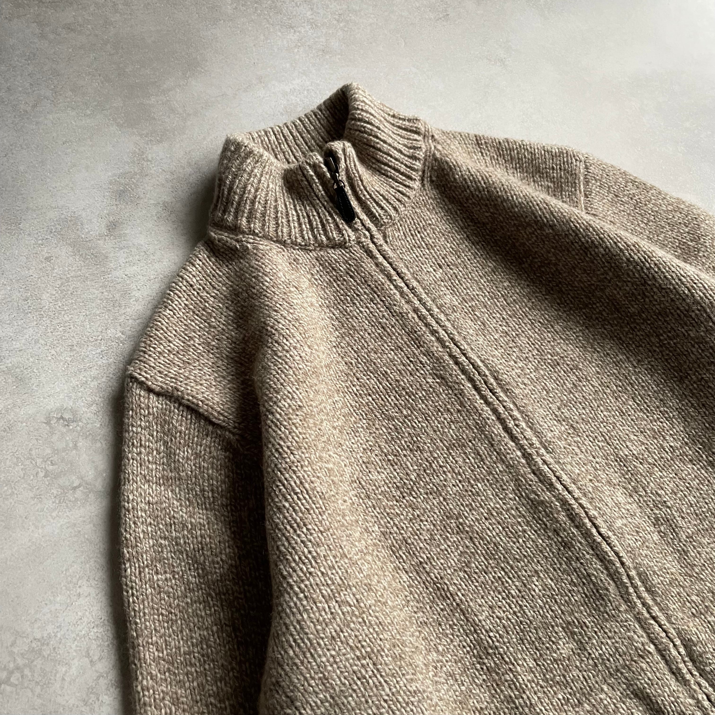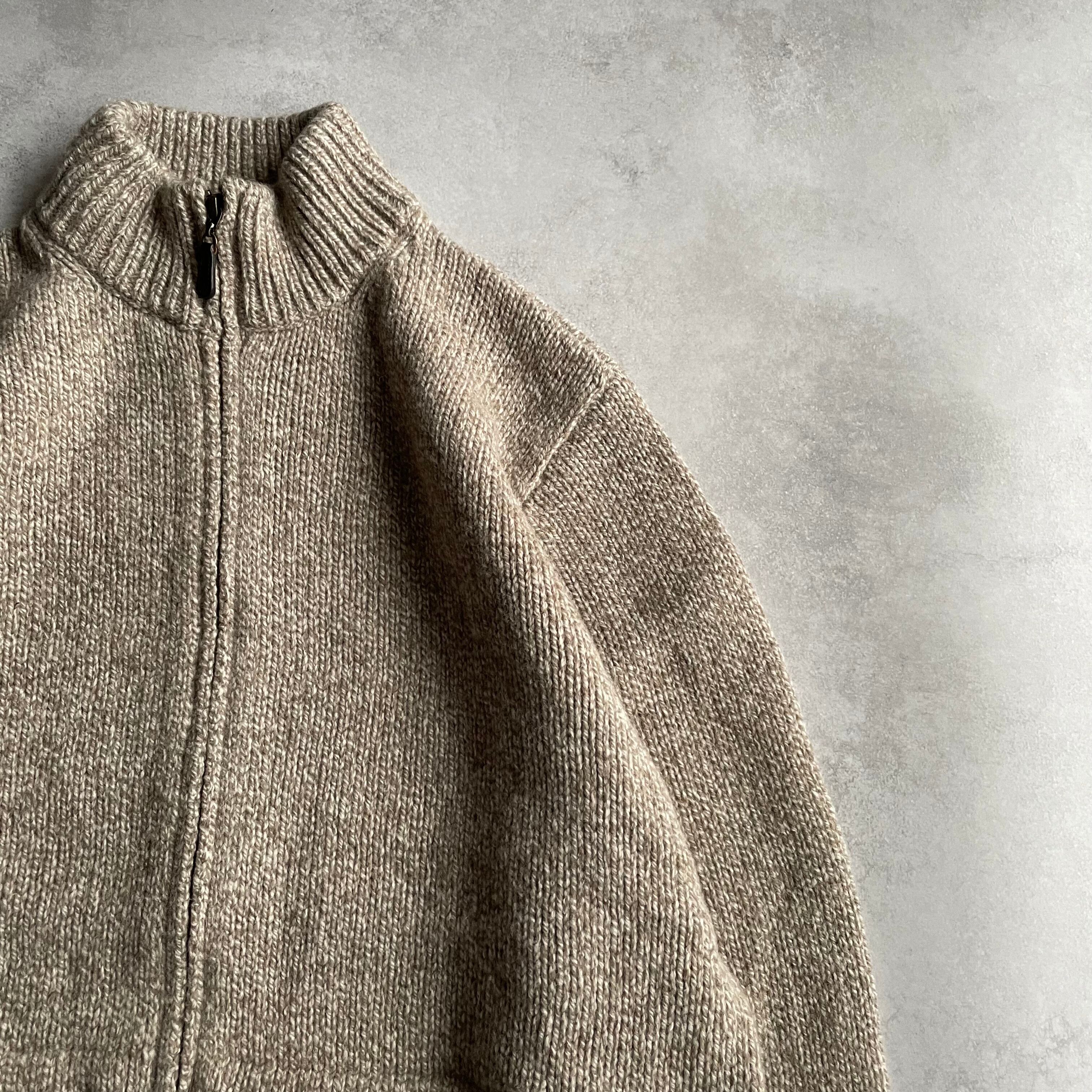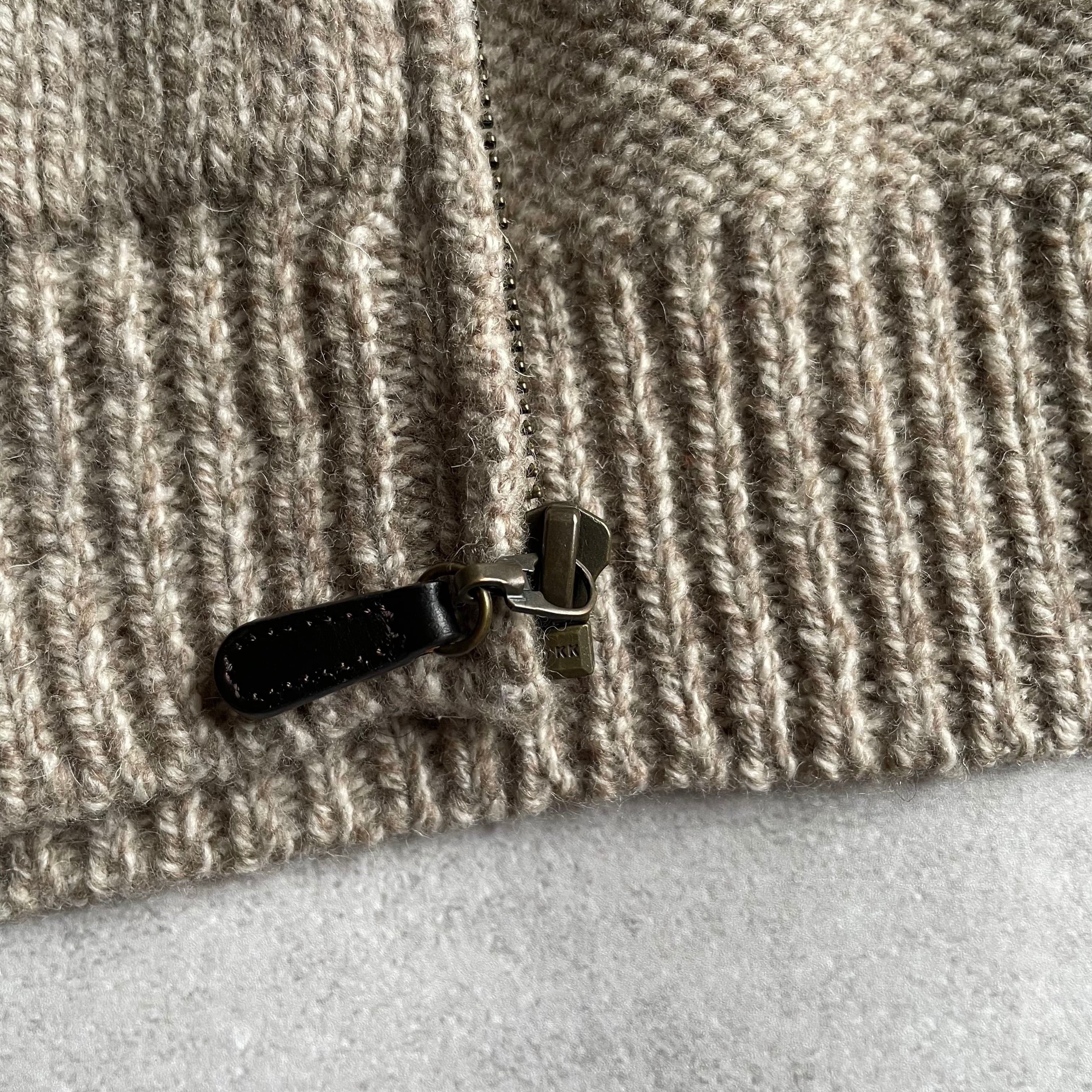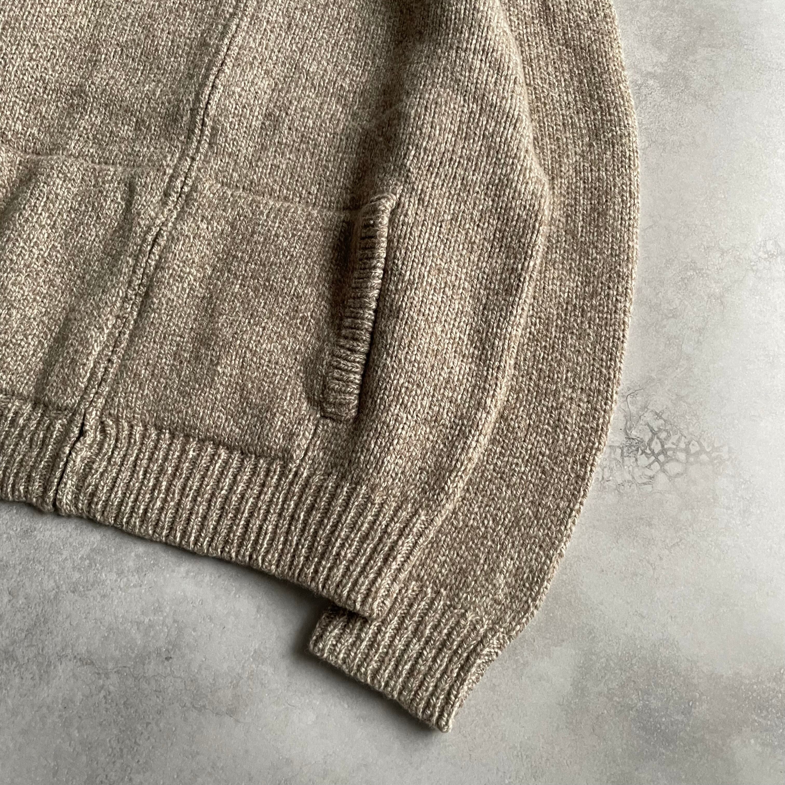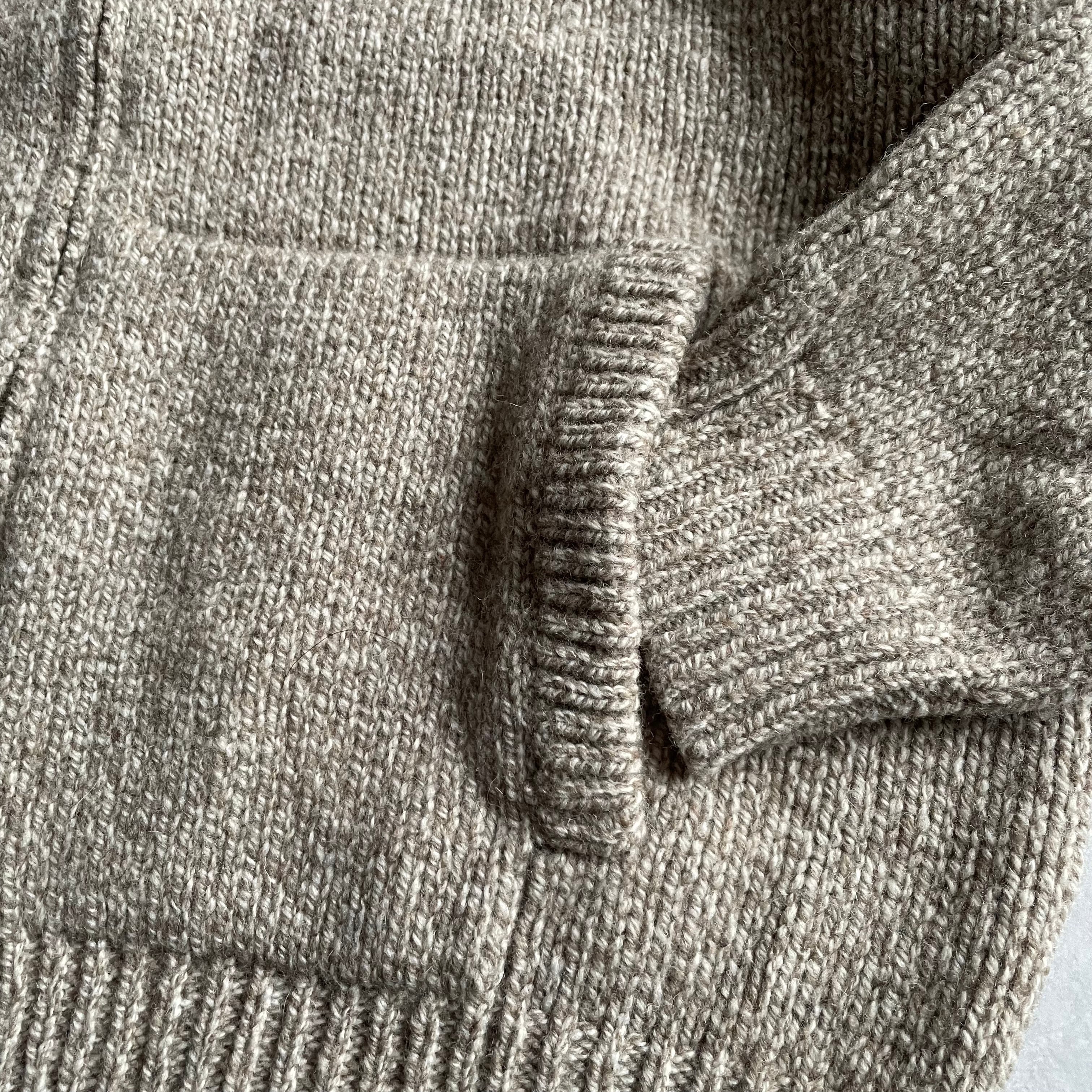 単色っぽく見えますが、よくよく見ると複数のカラーの糸で編まれた霜降り調のメランジニット