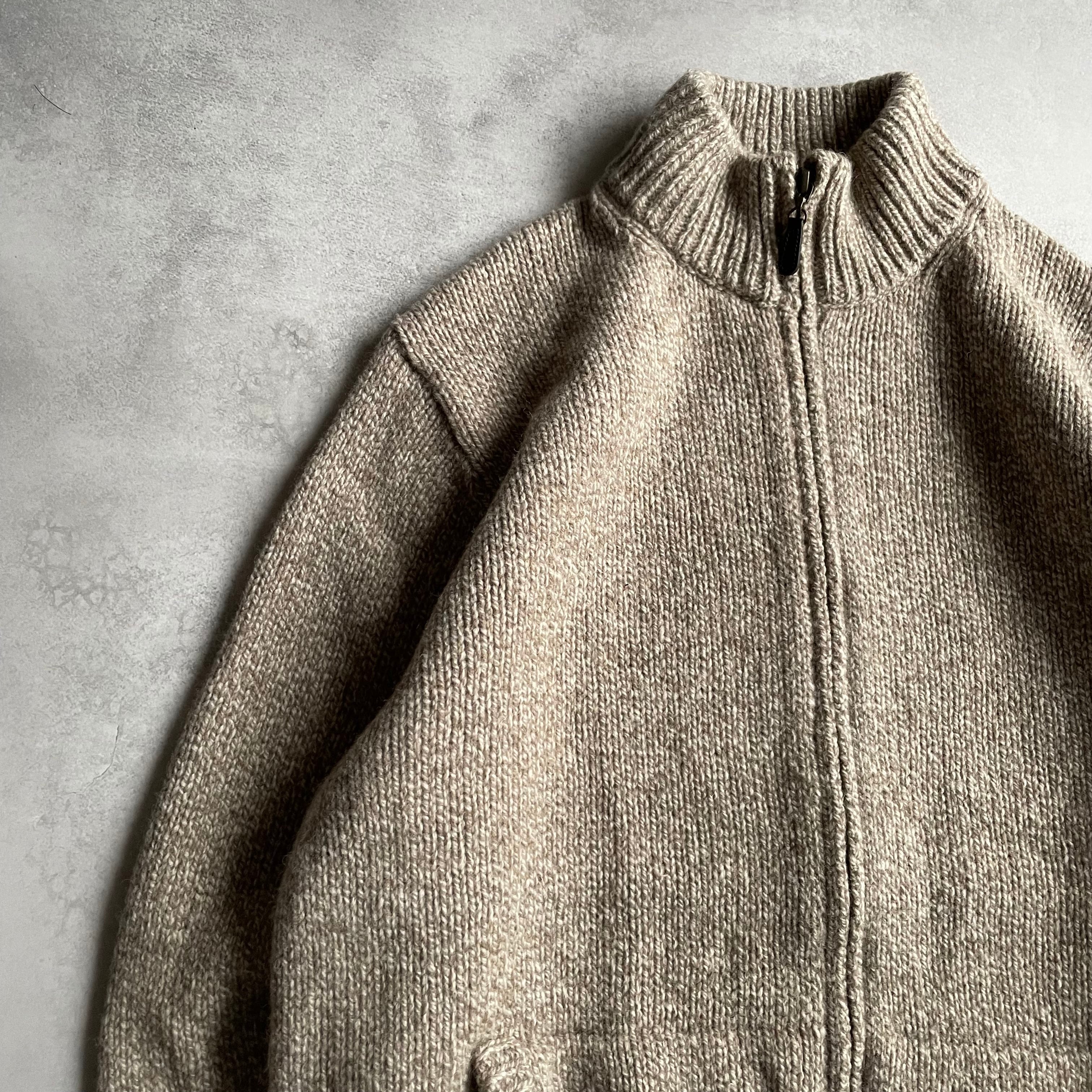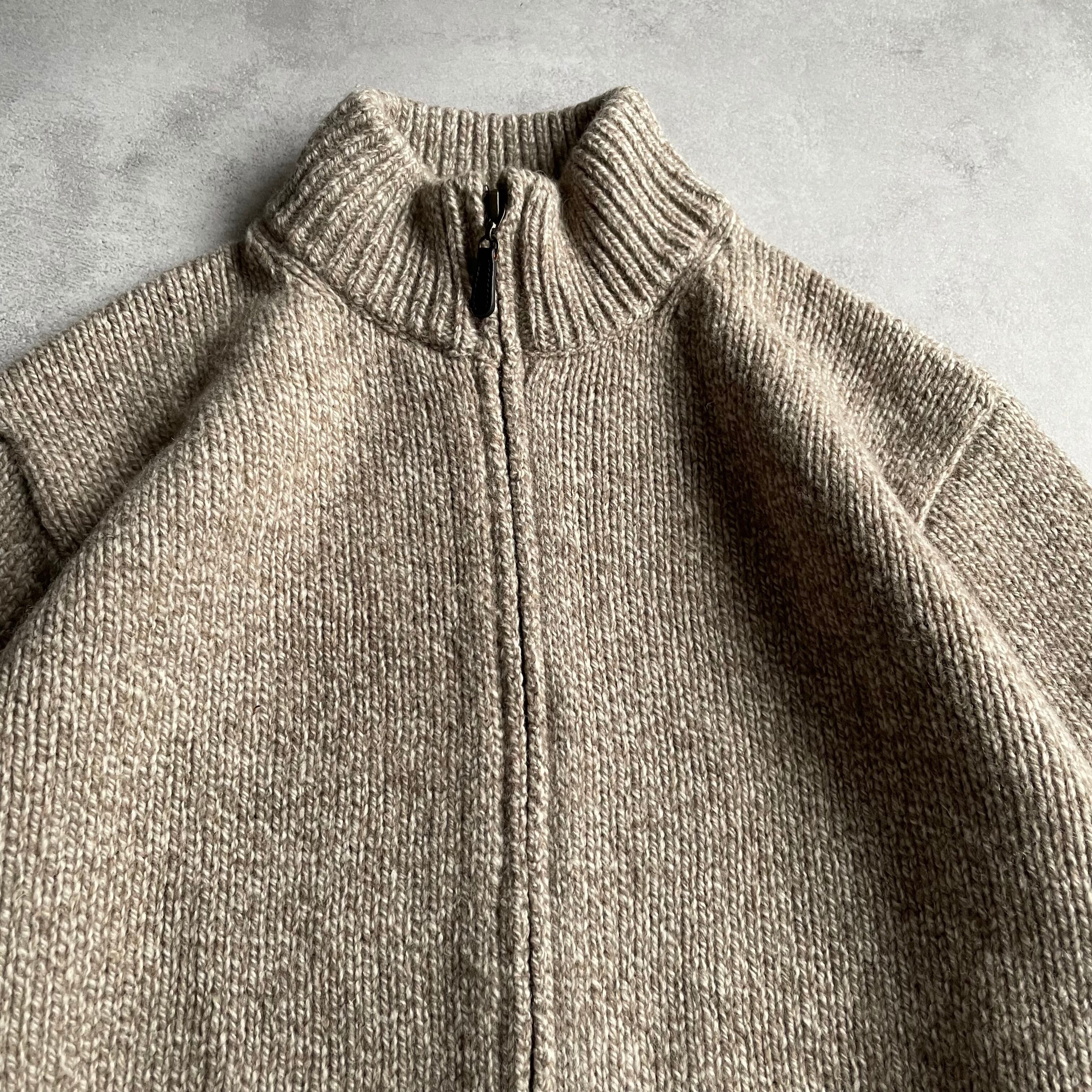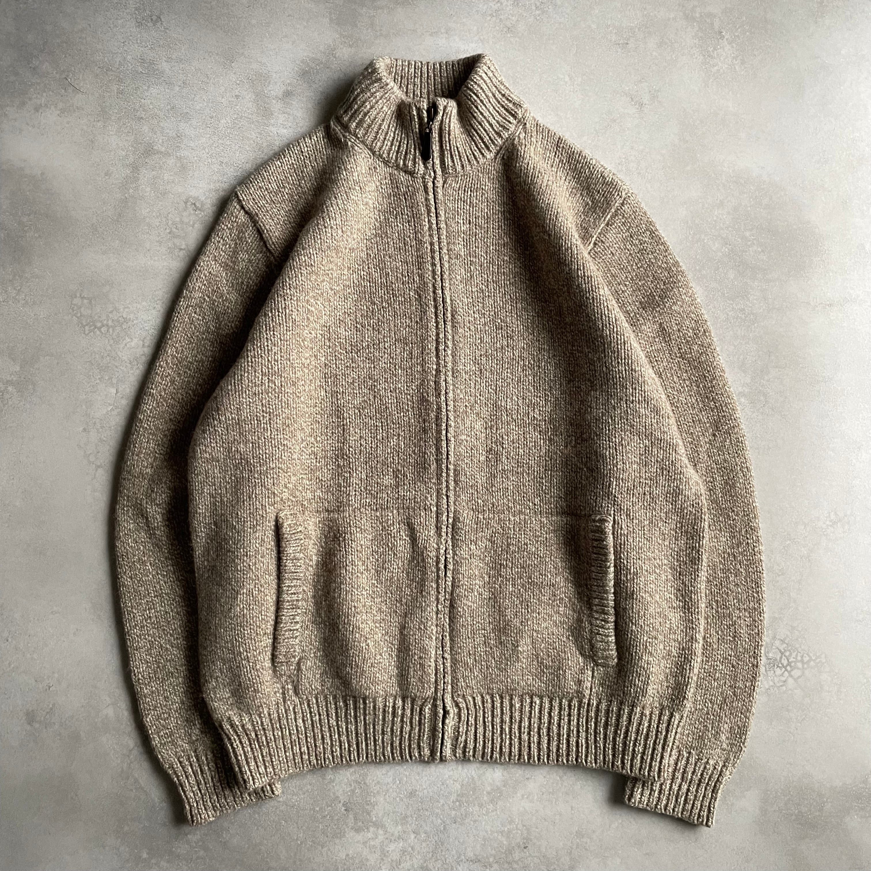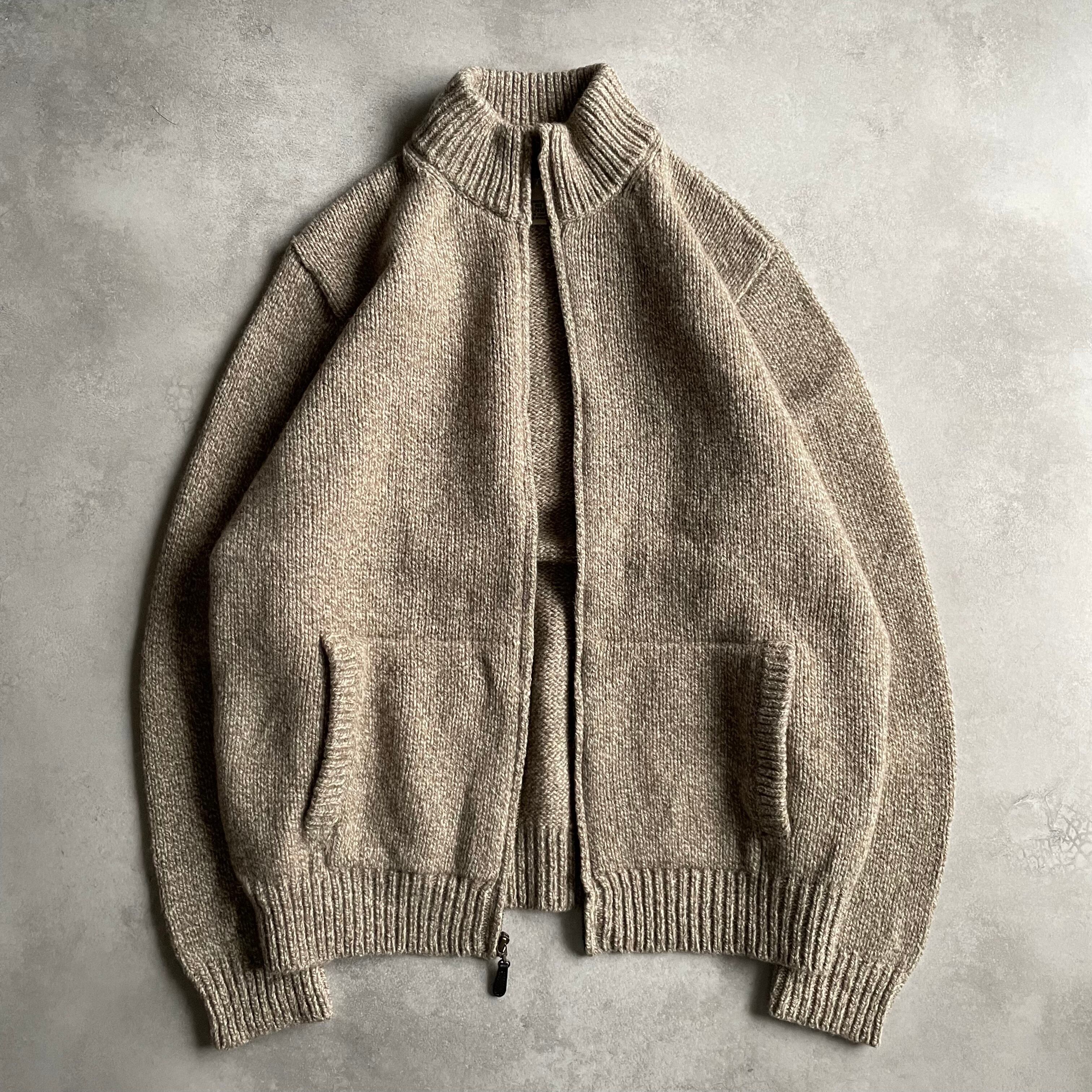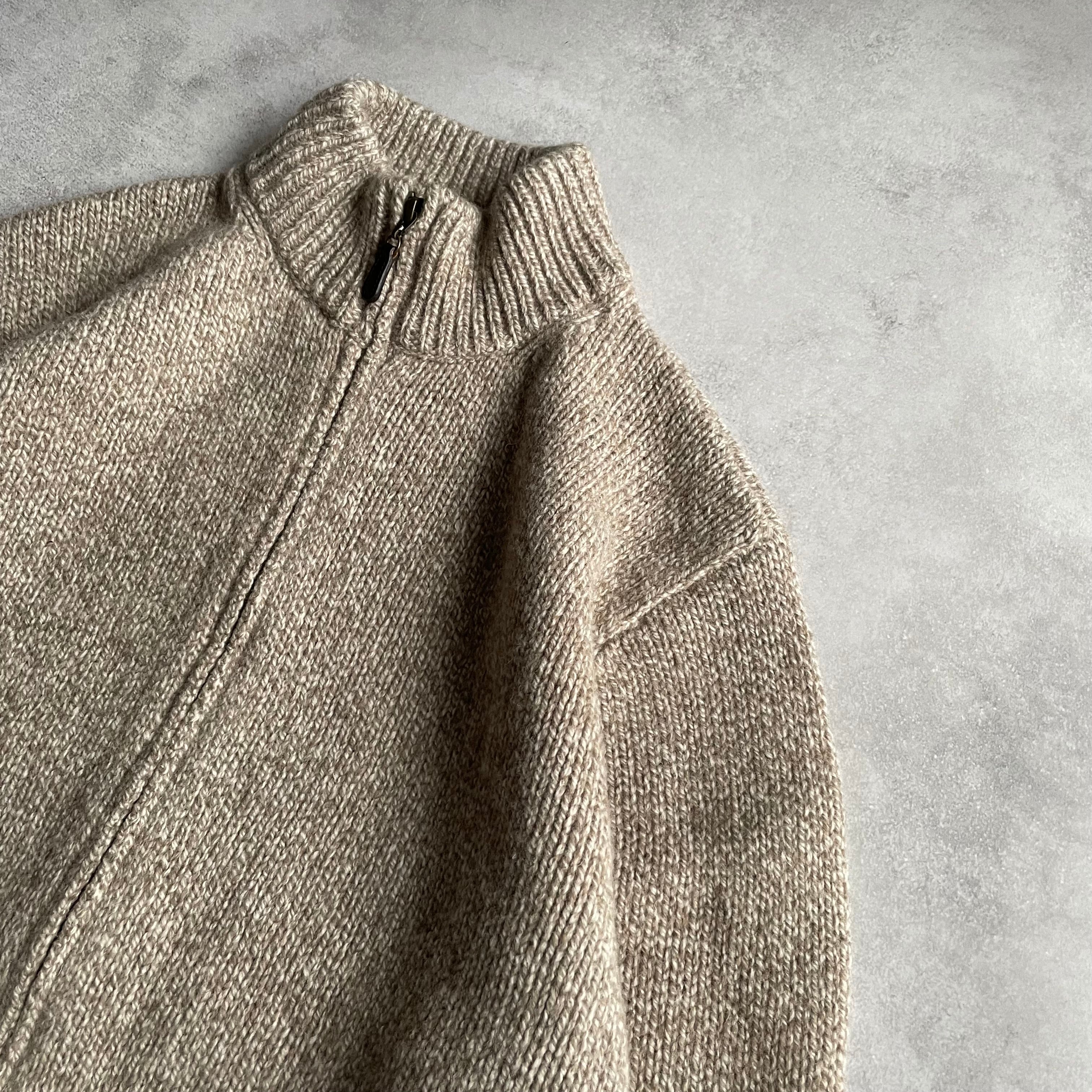 単色っぽく見えますが、よくよく見ると複数のカラーの糸で編まれた霜降り調のメランジニット