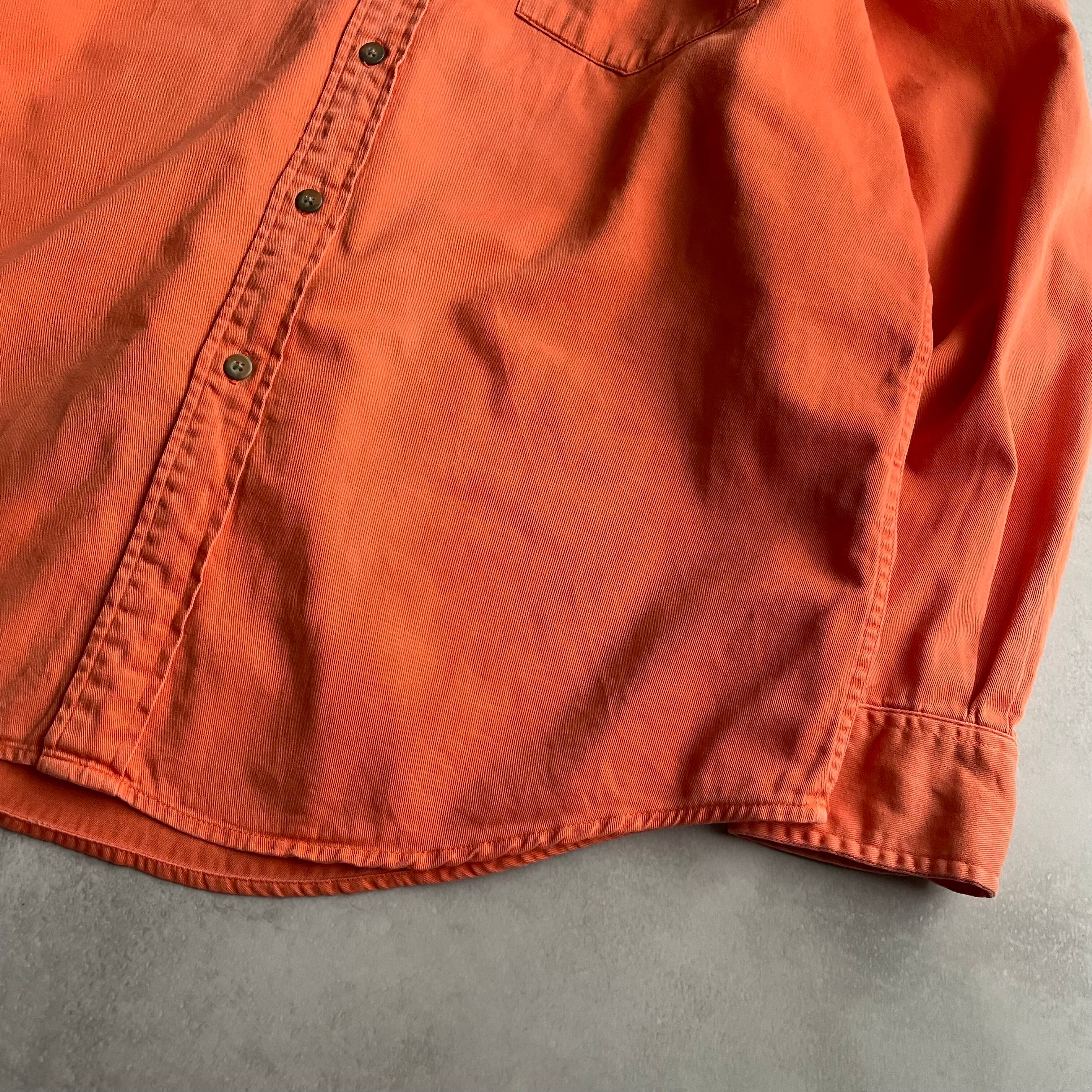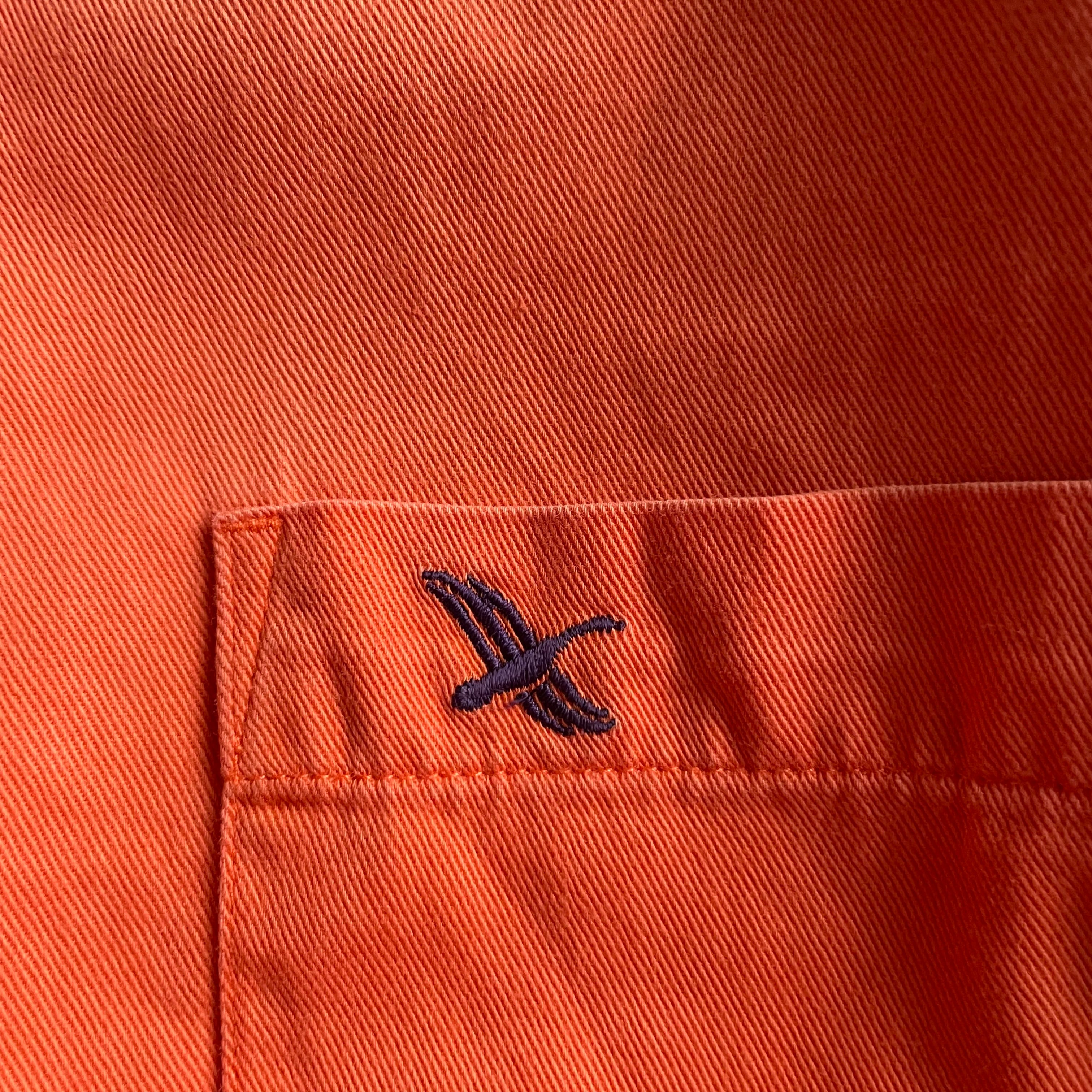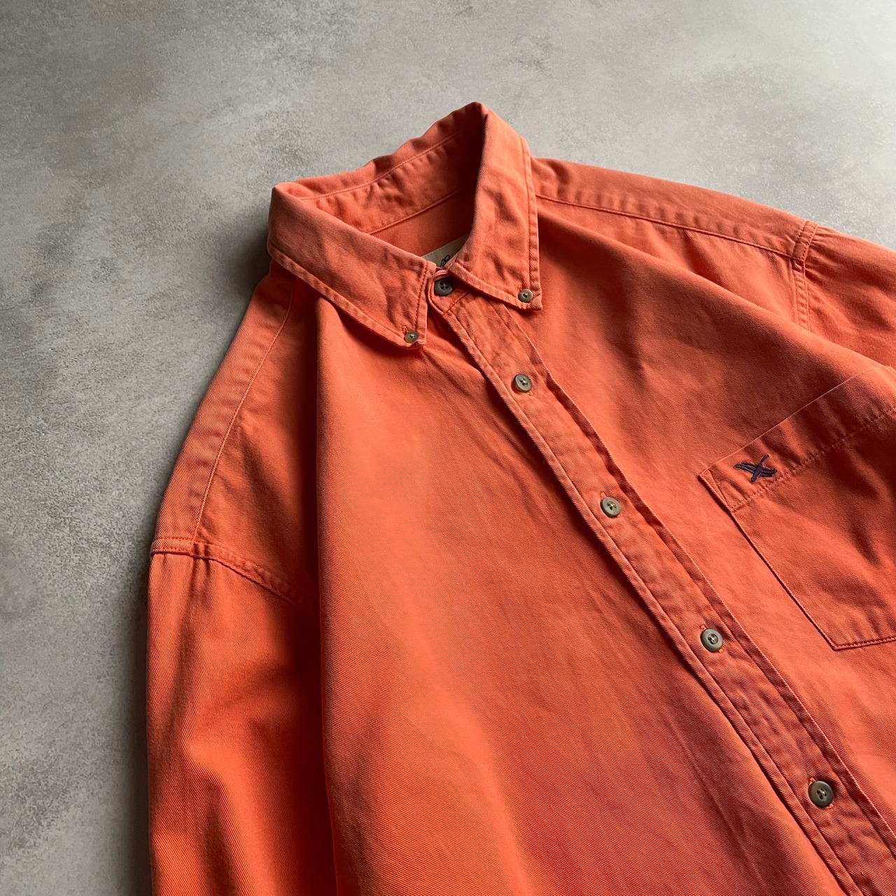 フェードしたオレンジカラーが絶妙で、カラーシャツの中でも意外と見かけないカラーリングに惹かれます