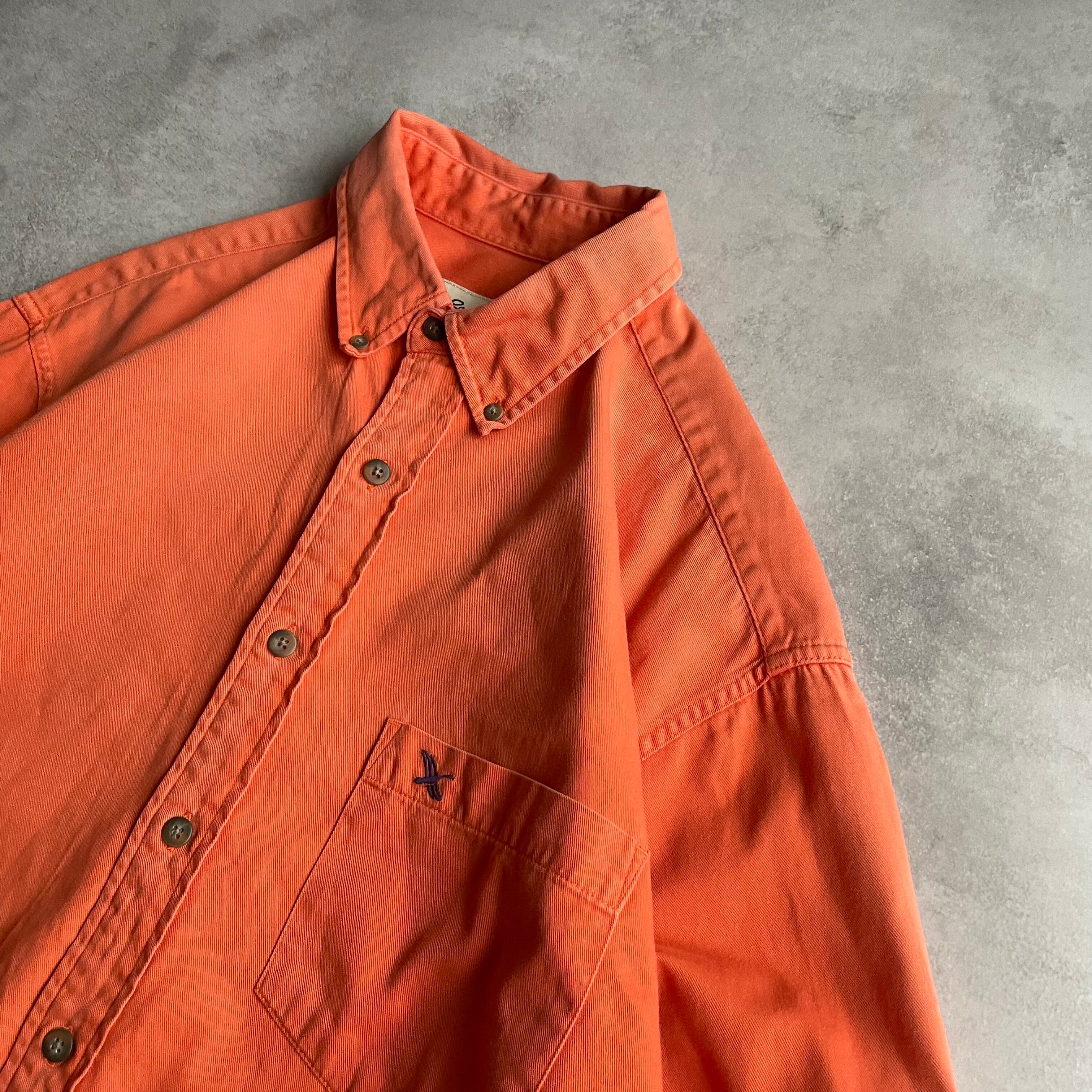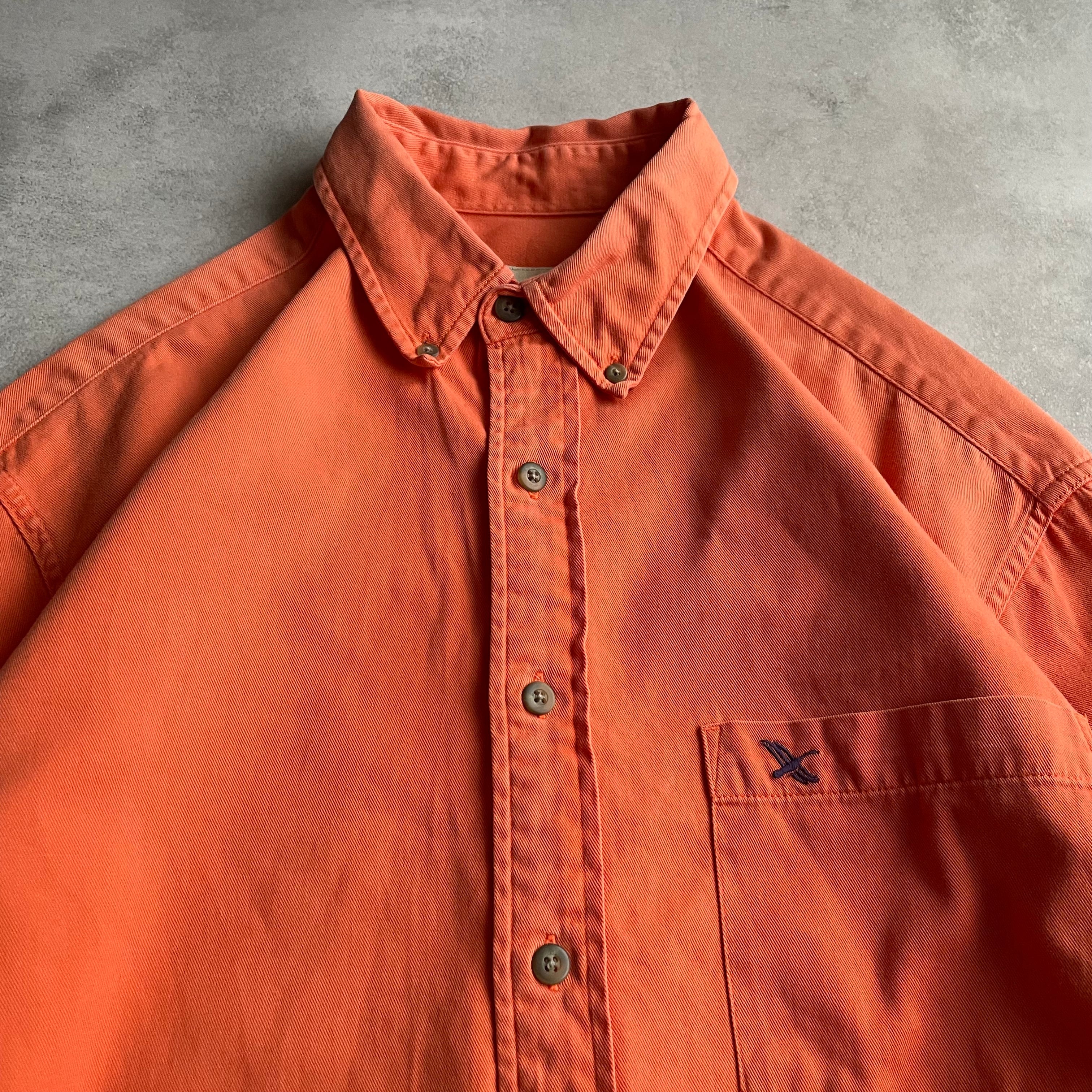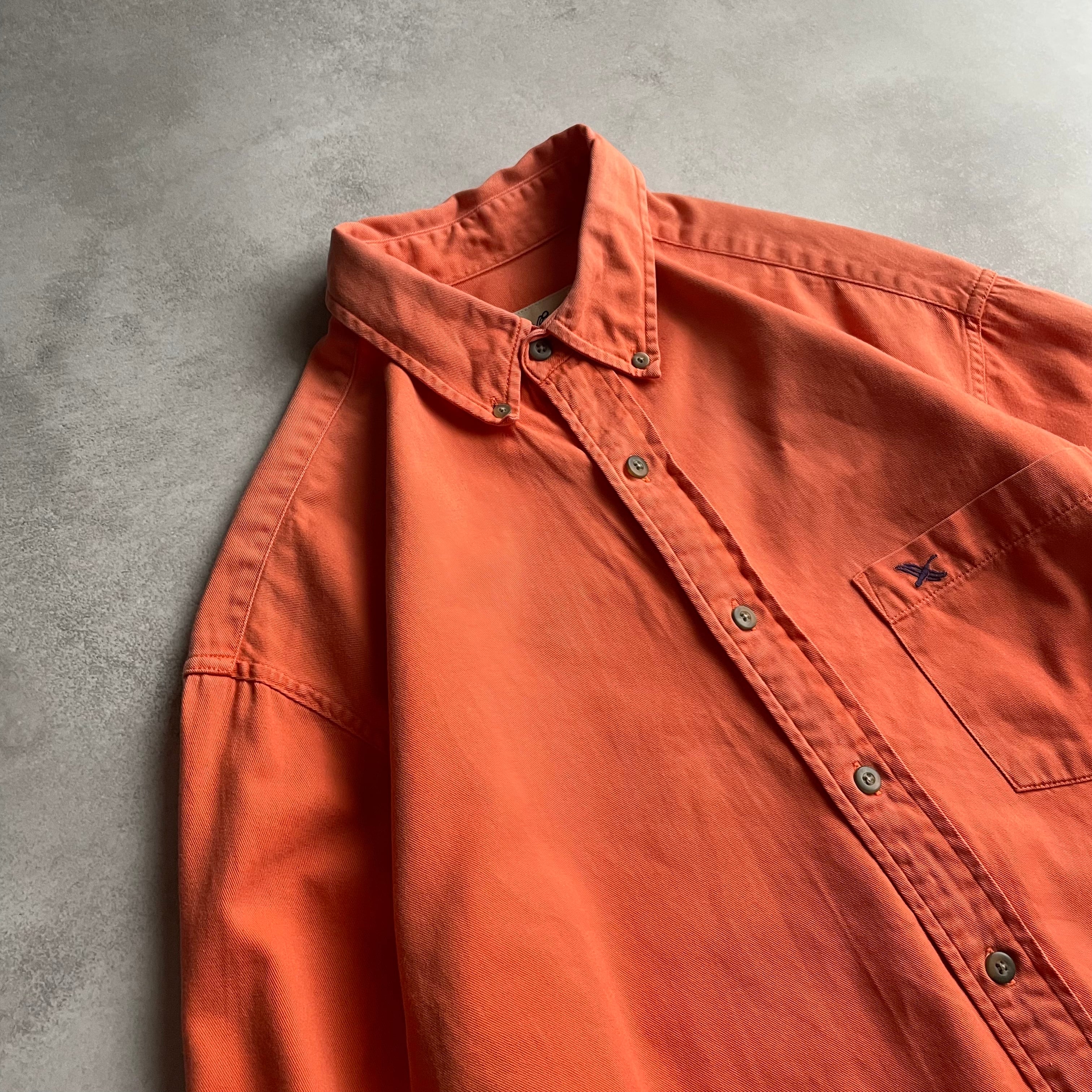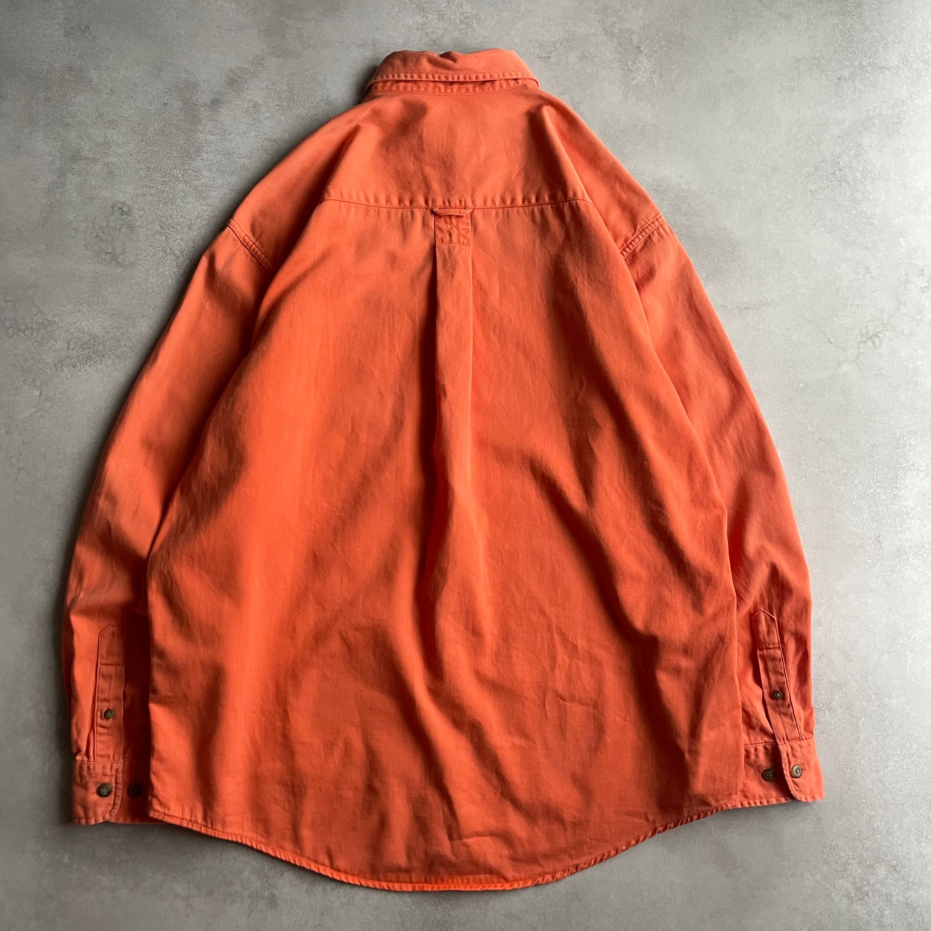 フェードしたオレンジカラーが絶妙で、カラーシャツの中でも意外と見かけないカラーリングに惹かれます