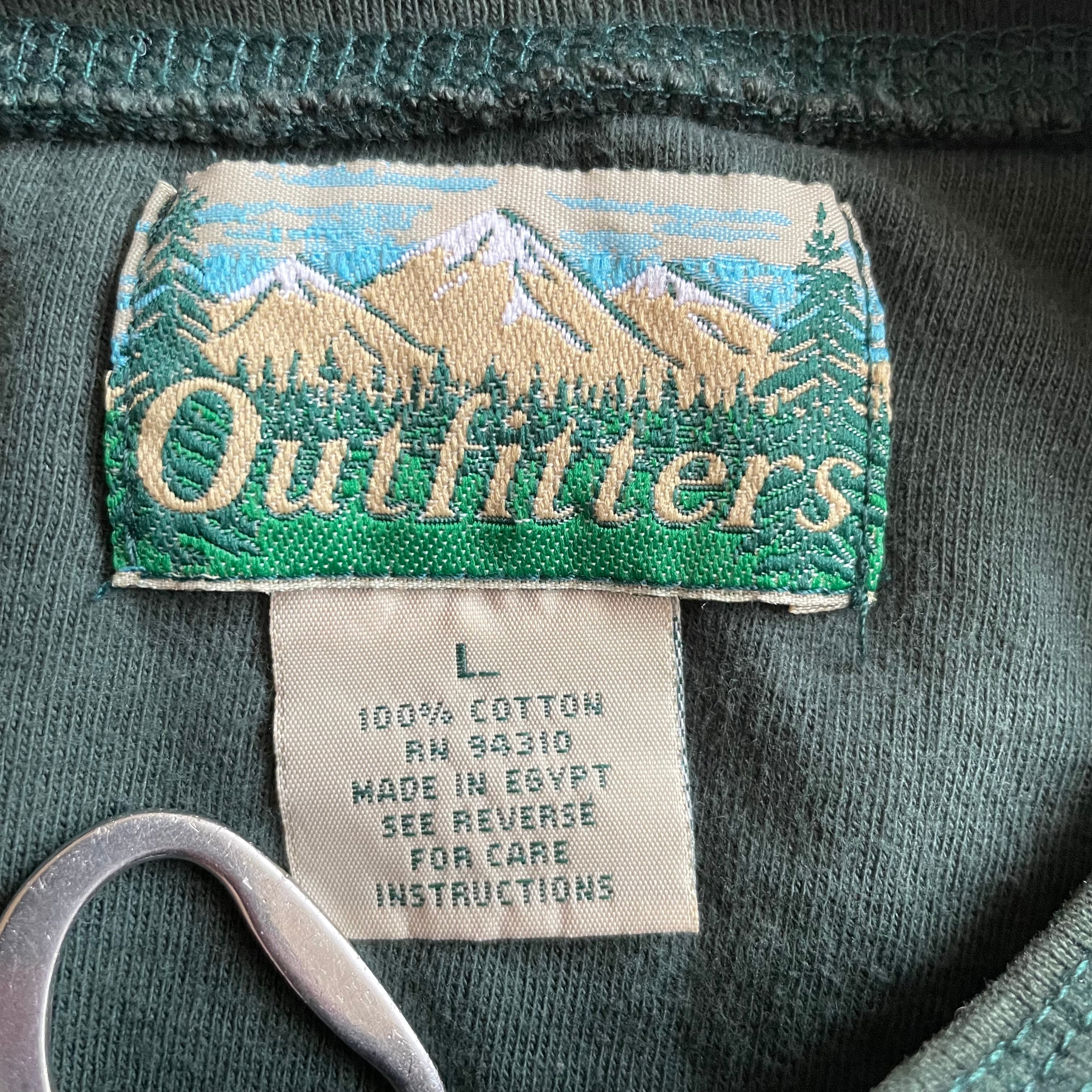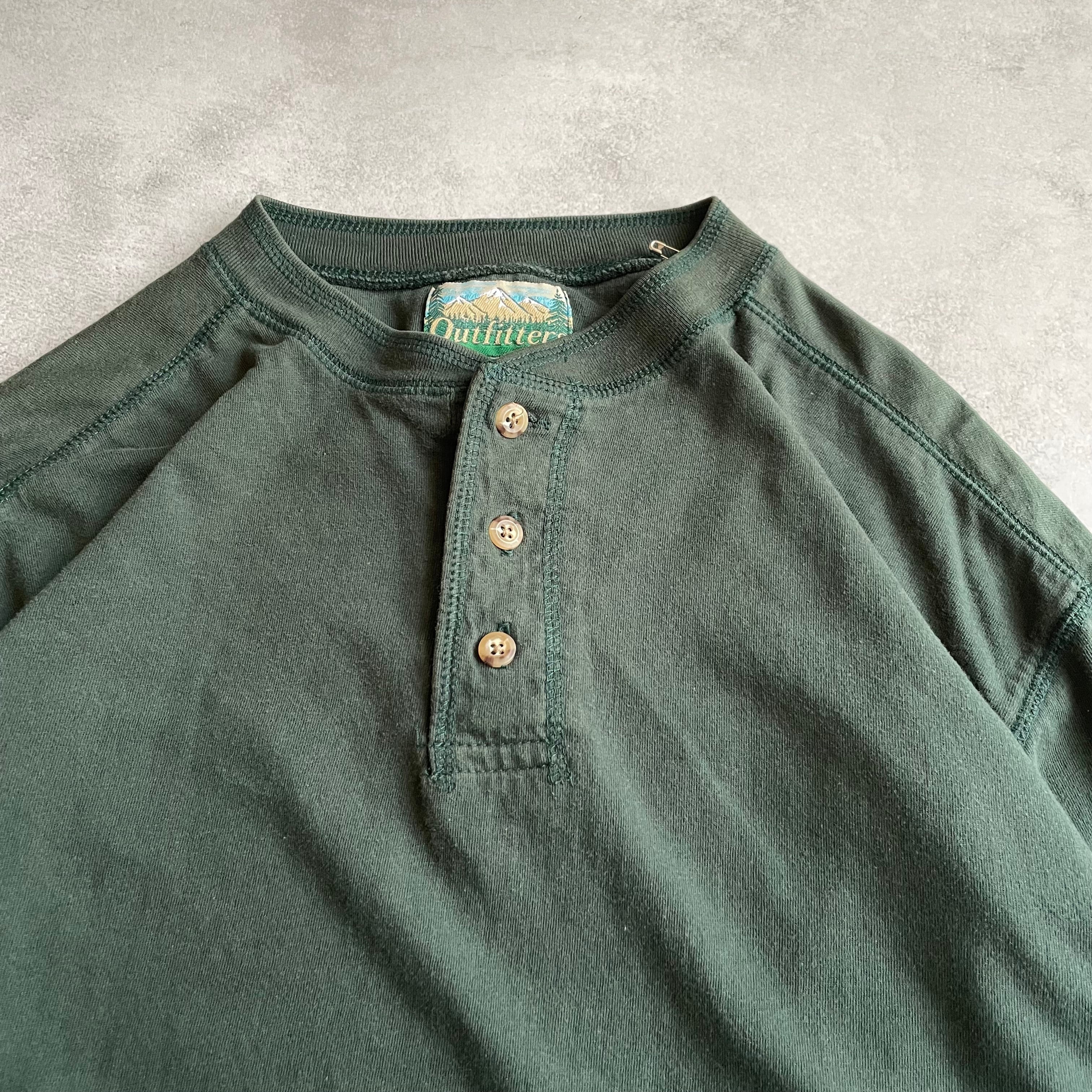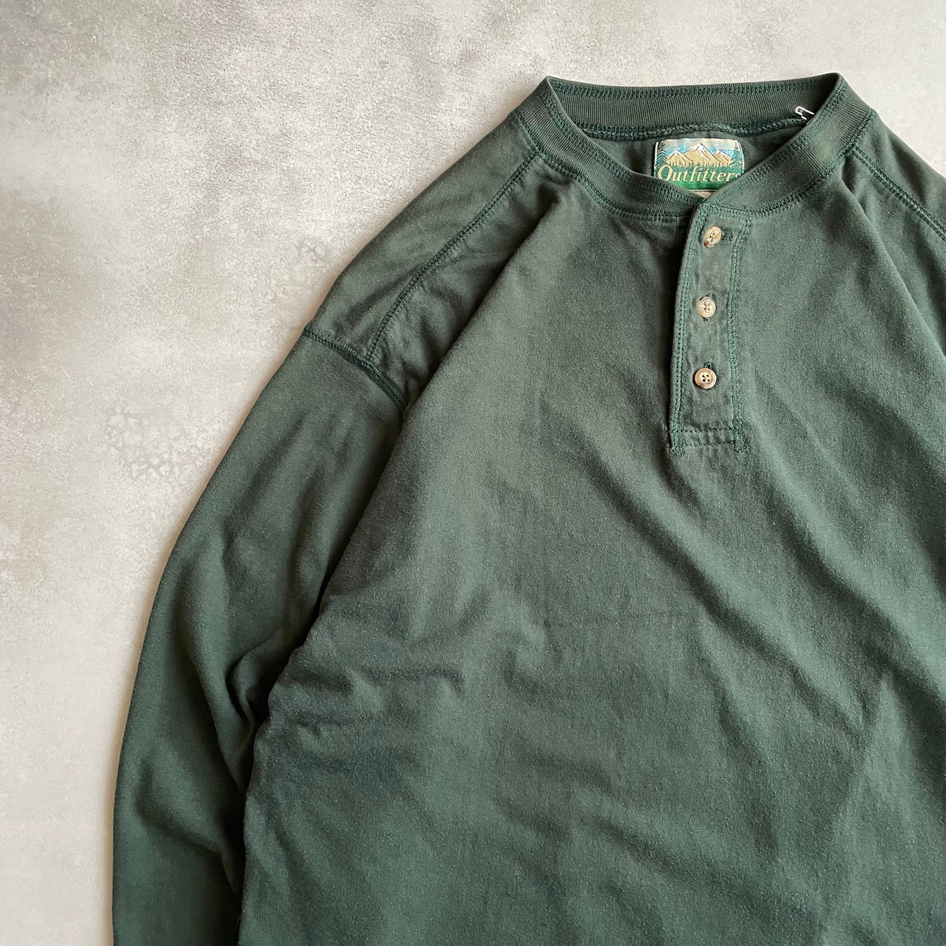 ダークグリーンカラーのロンTeeで、首元のヘンリーネック仕様が魅力