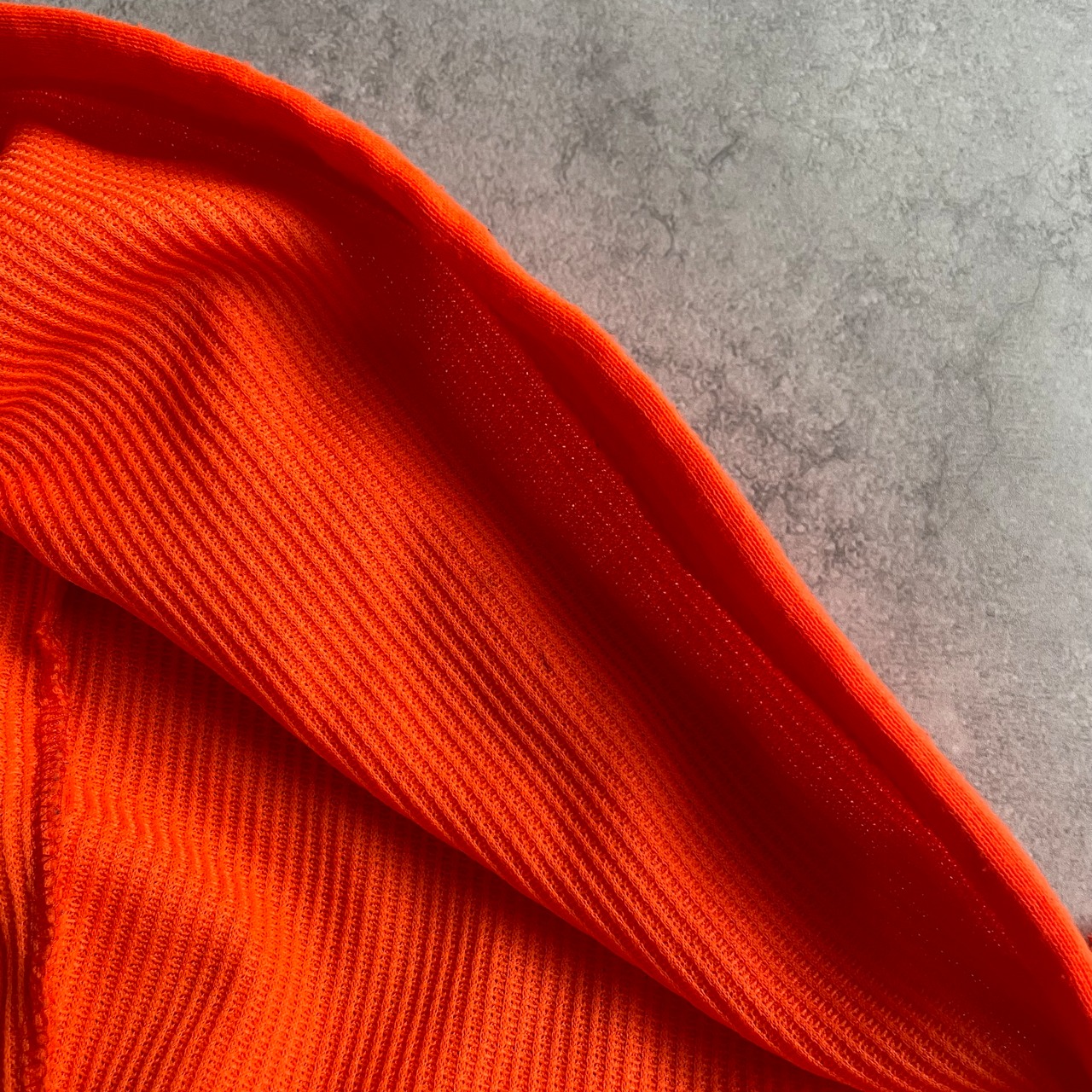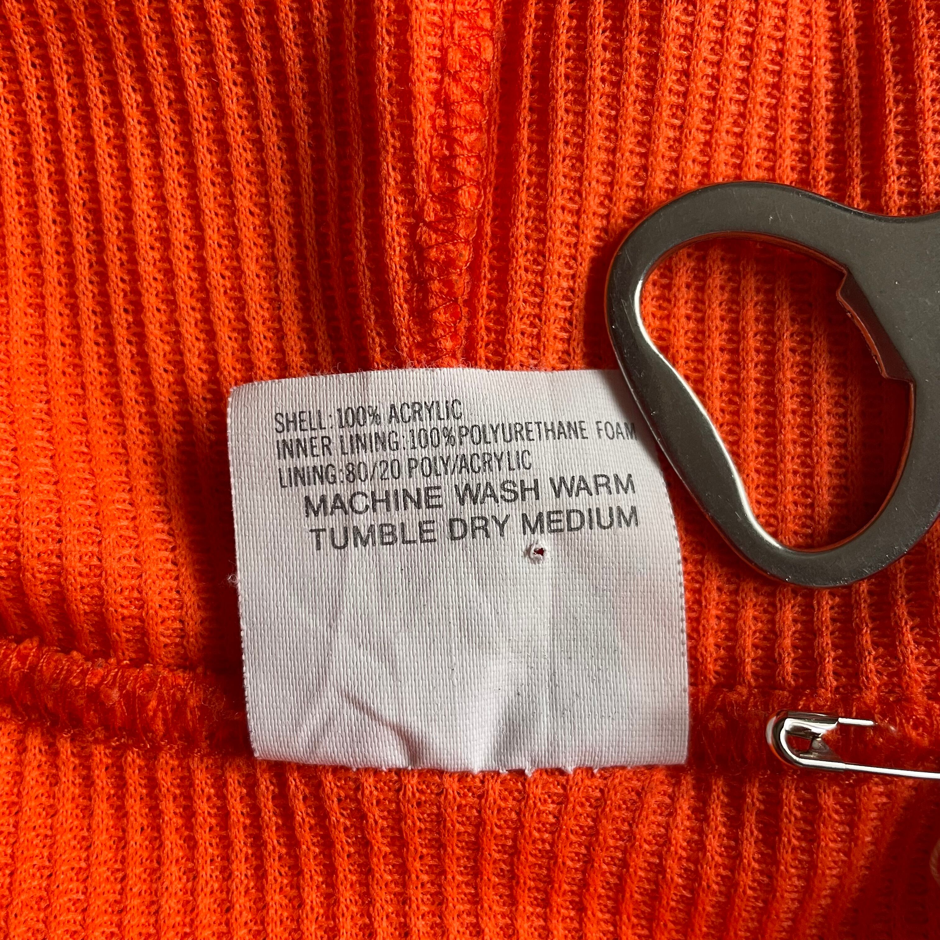 ビビットなオレンジカラーが目を惹く1着で、裏地サーマルの個体