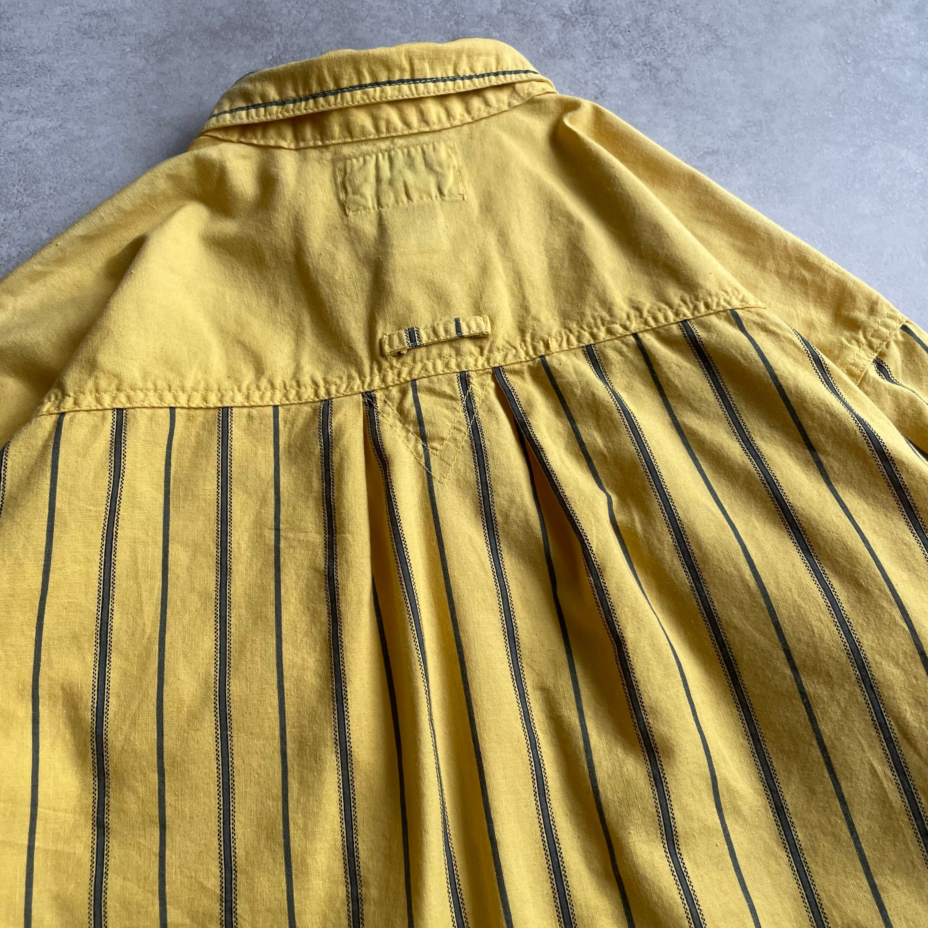 こちらのアイテムは、春らしいイエローカラーのストライプシャツ