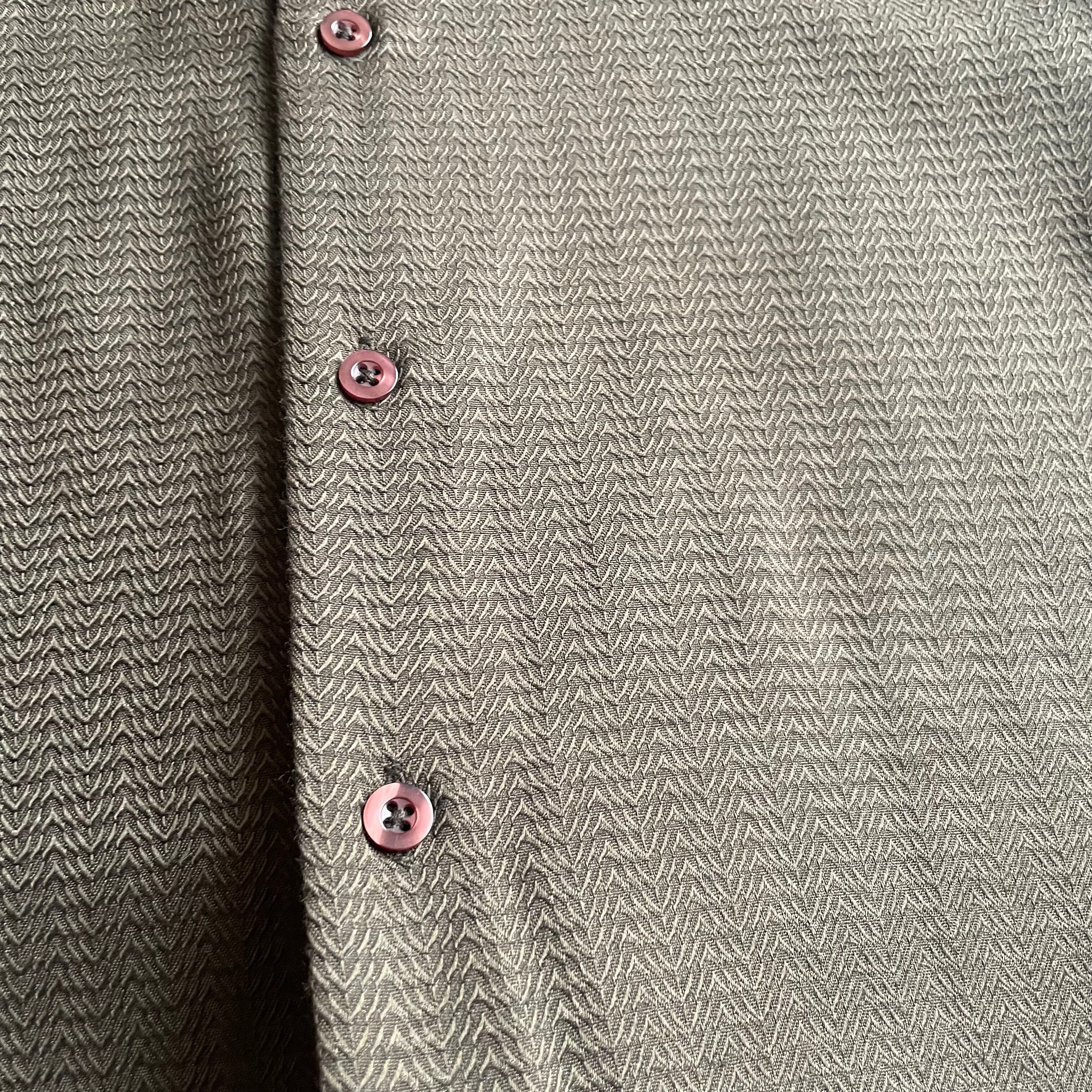 こなれ感を演出出来る細かな柄が程よい主張感で、ドレスライクな襟元や光沢のあるボタンもポイント