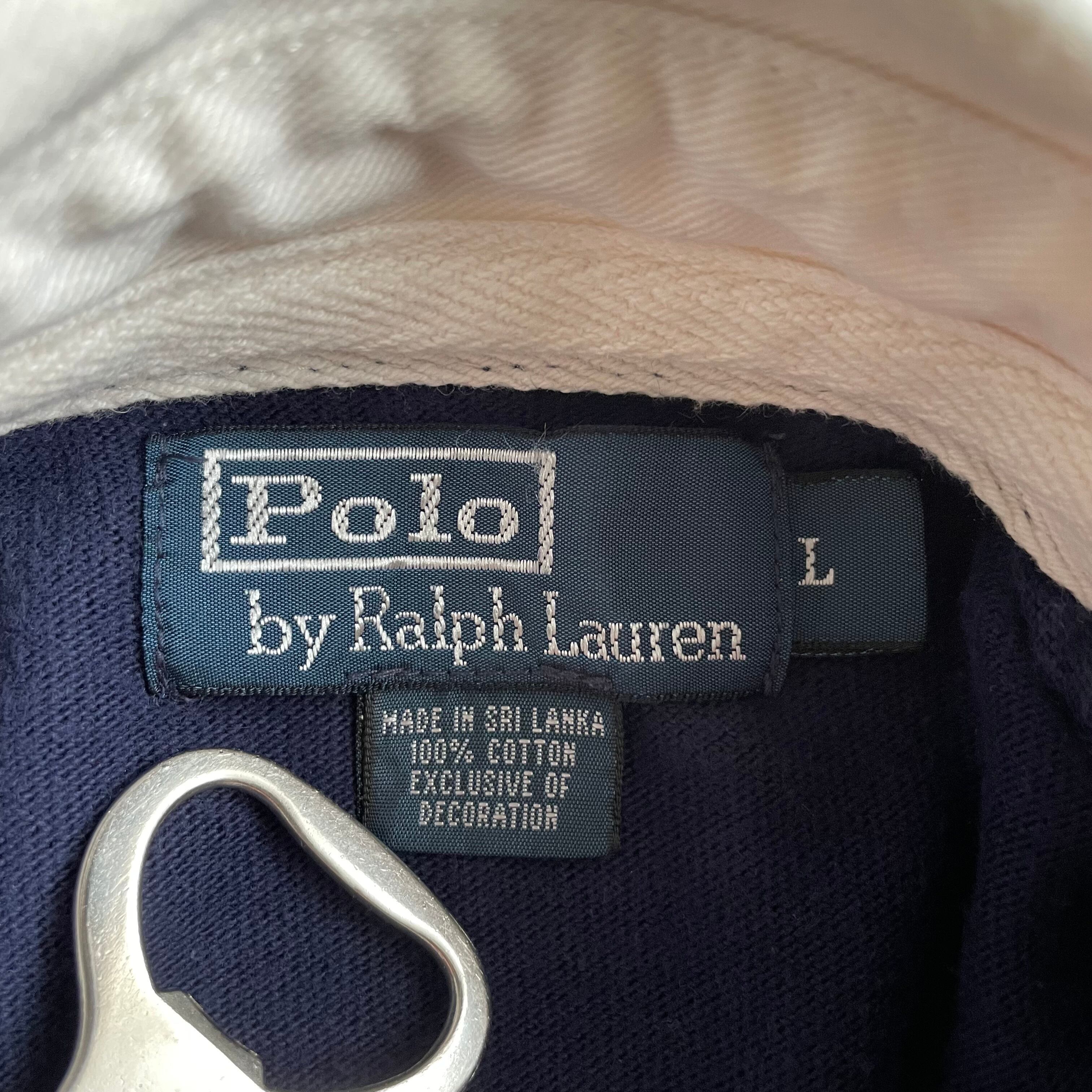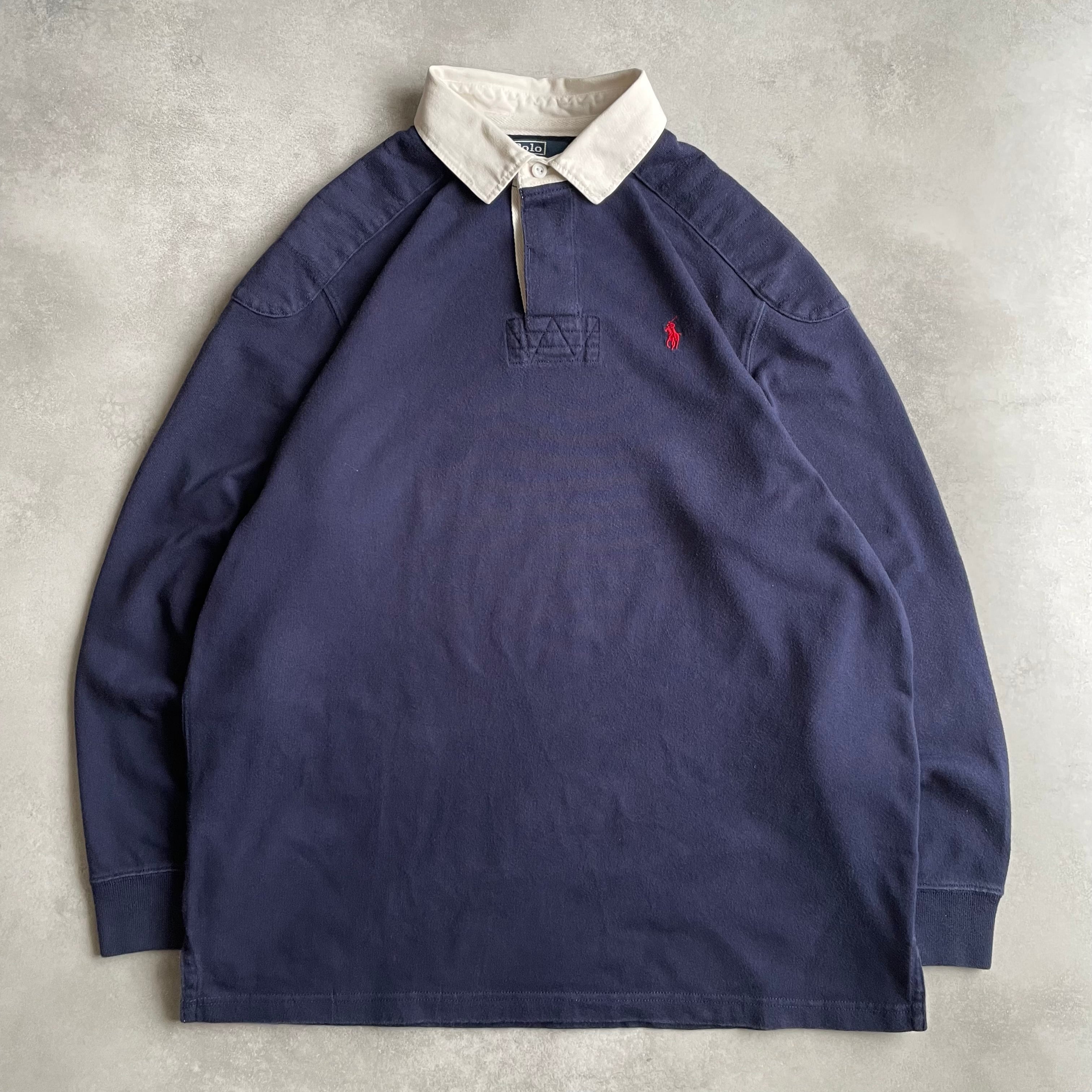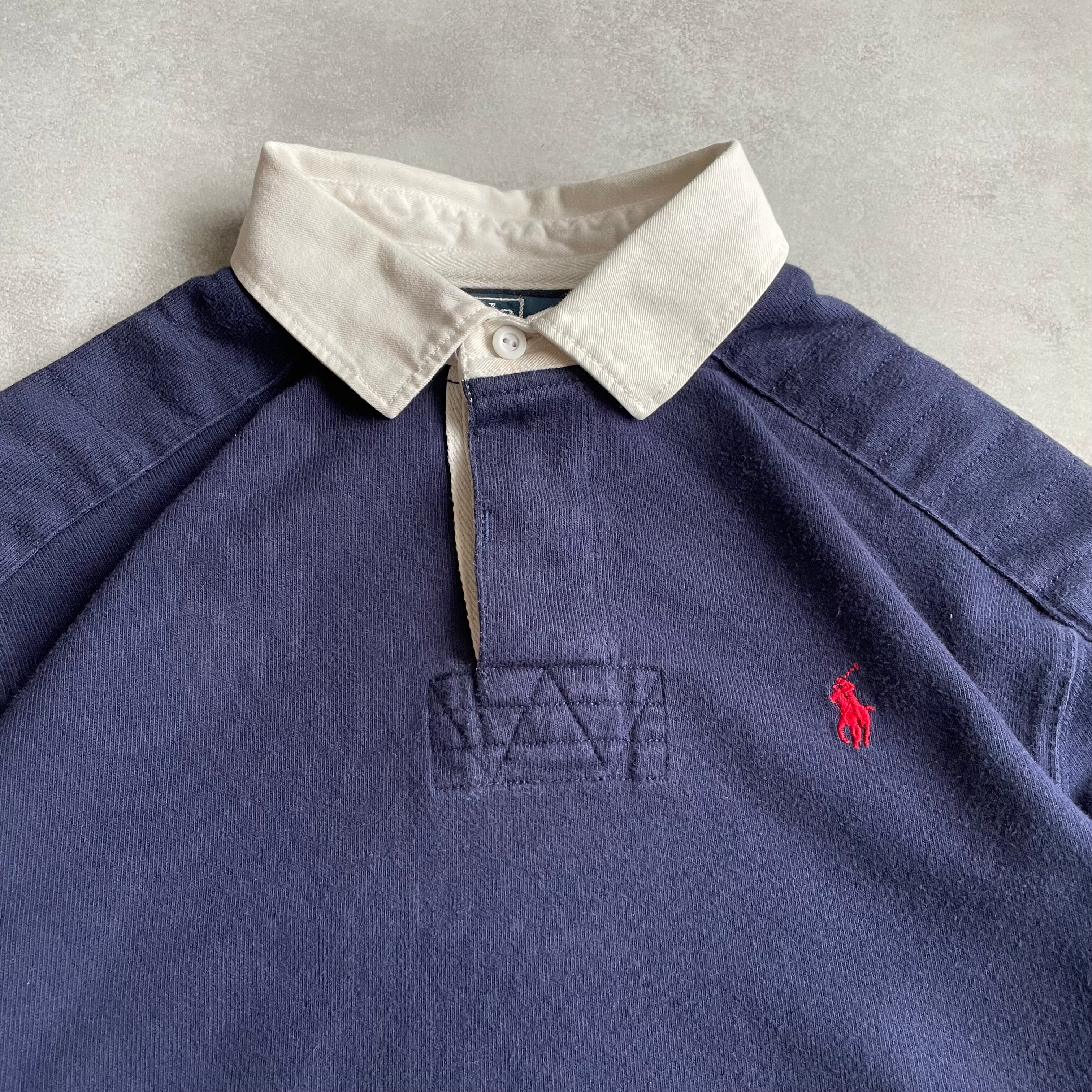 ラルフローレンの代名詞とも言えるアイテムで、ネイビーボディに赤ポニー刺繍が施された1着