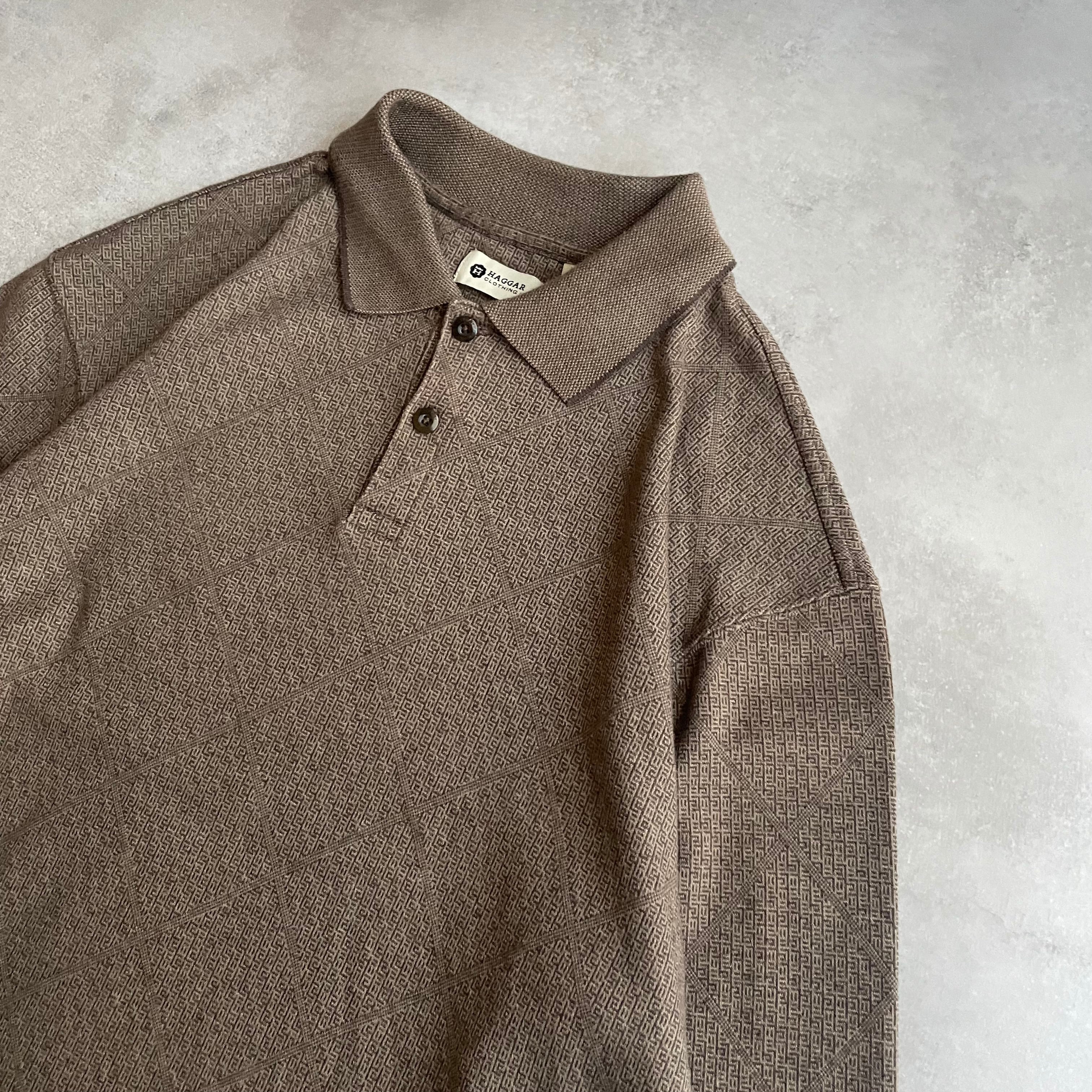 00s HAGGAR Geometric Pattern L/S knit polo shirt