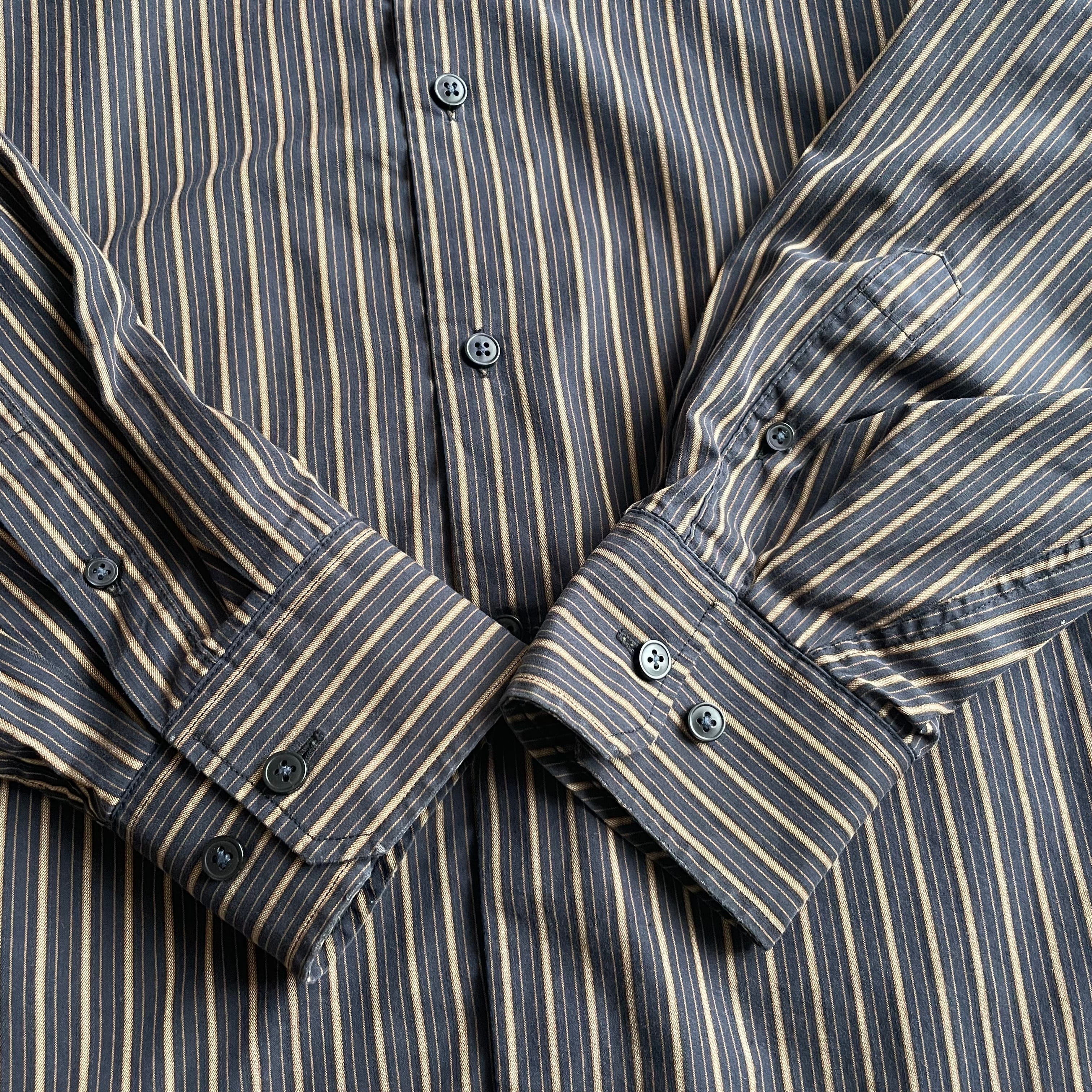 ダークネイビーボディにイエローのラインが入るストライプ柄の1着