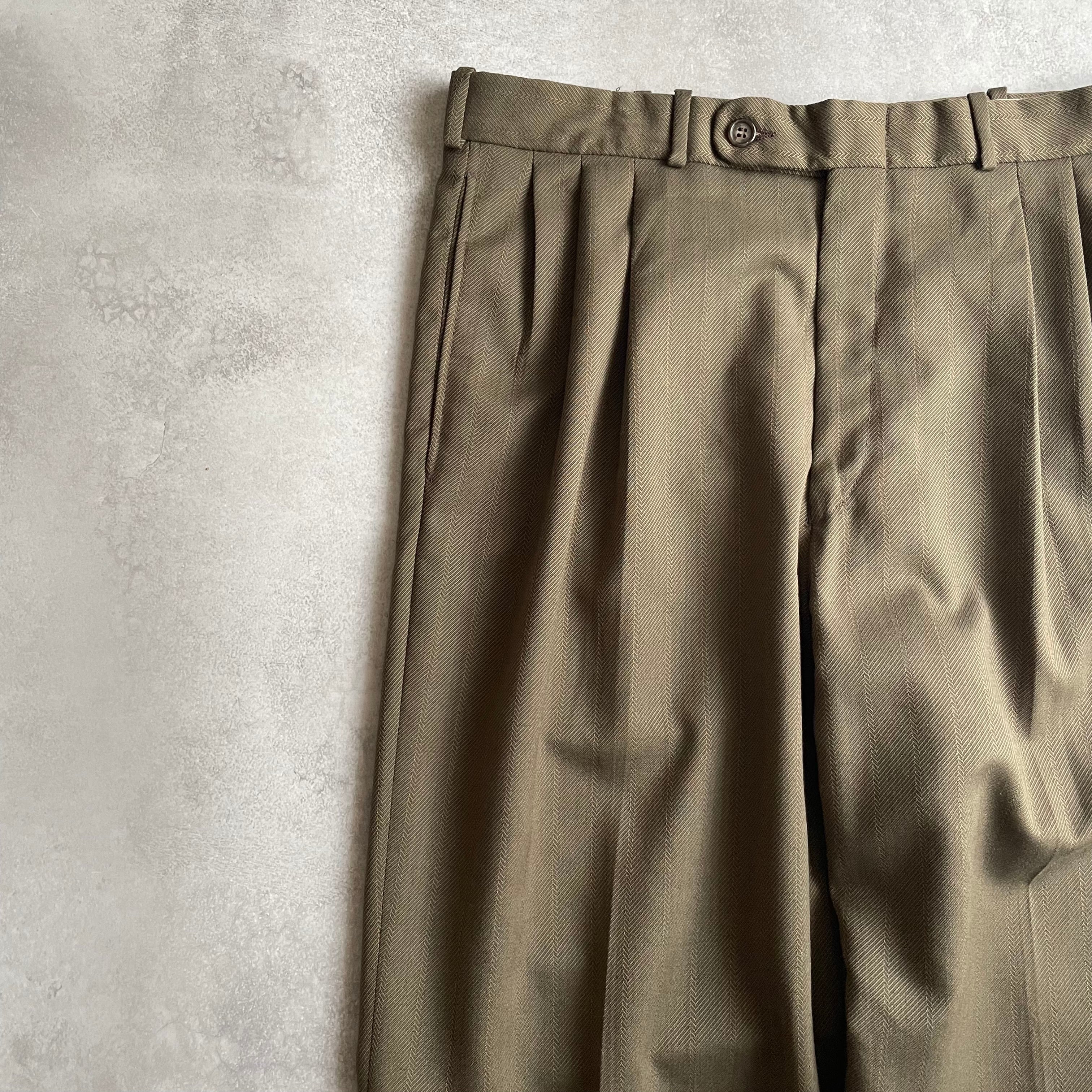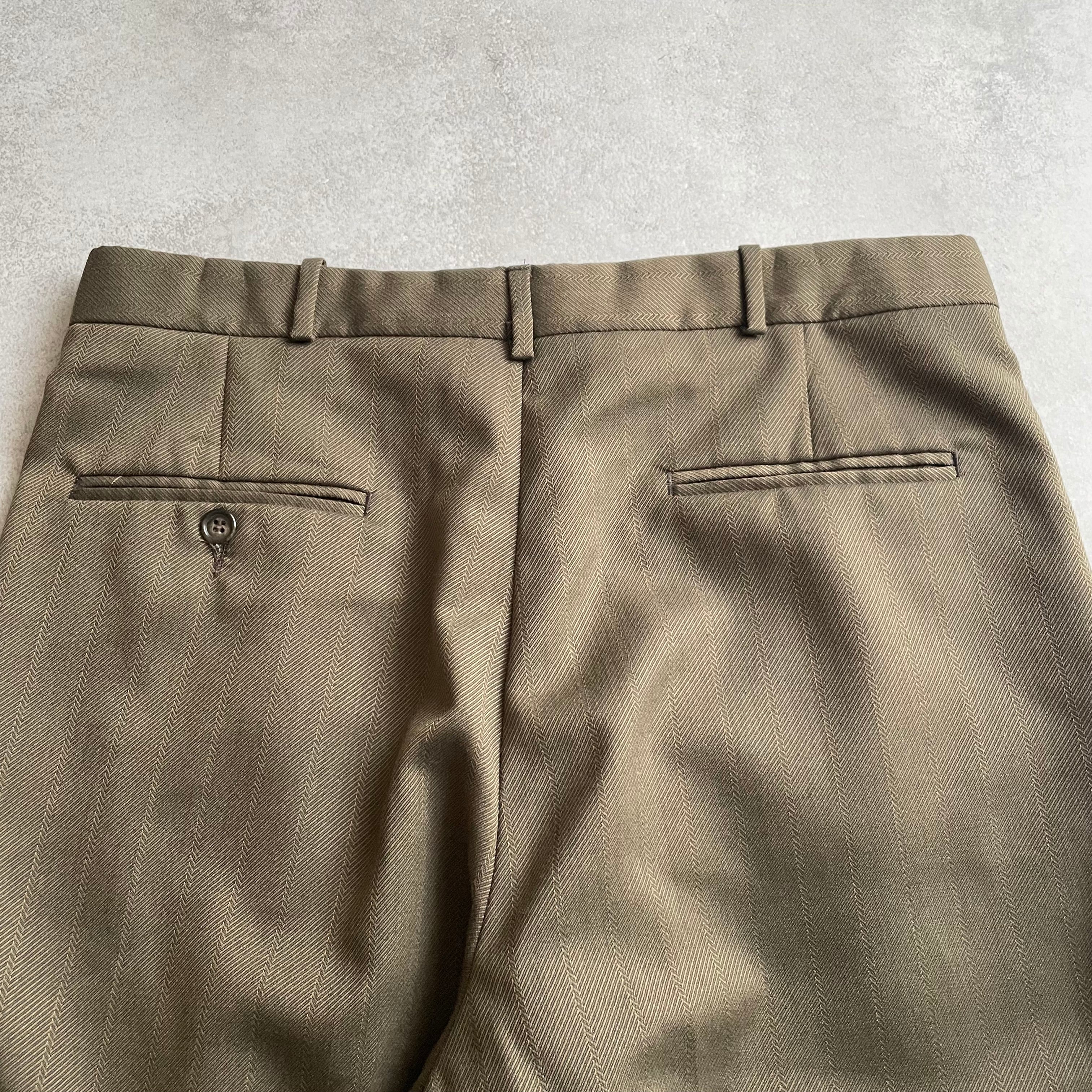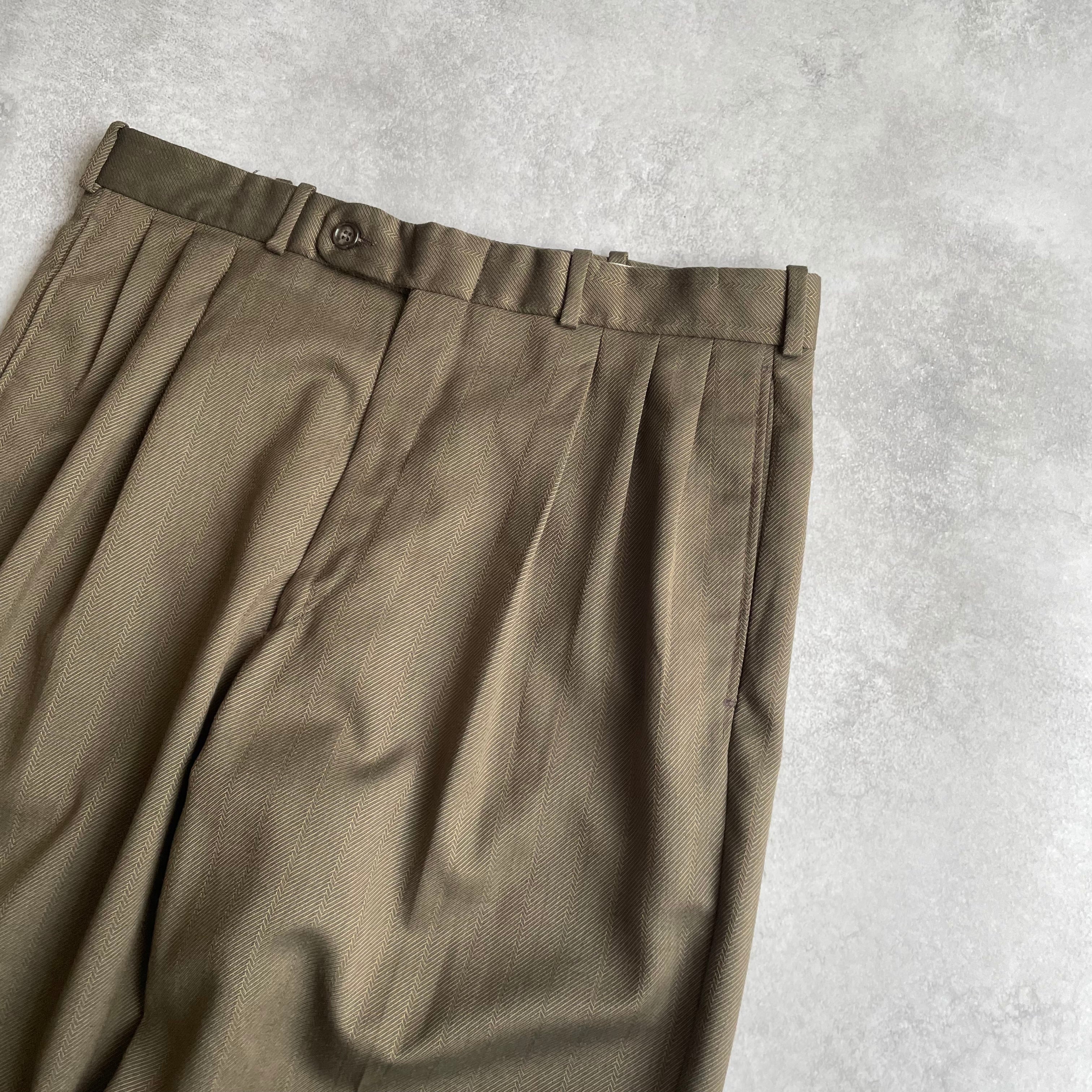 ヘリンボーン調の織り柄が程よいアクセントになっており、シンプルな装いにも使いやすいスラックスかなと思います