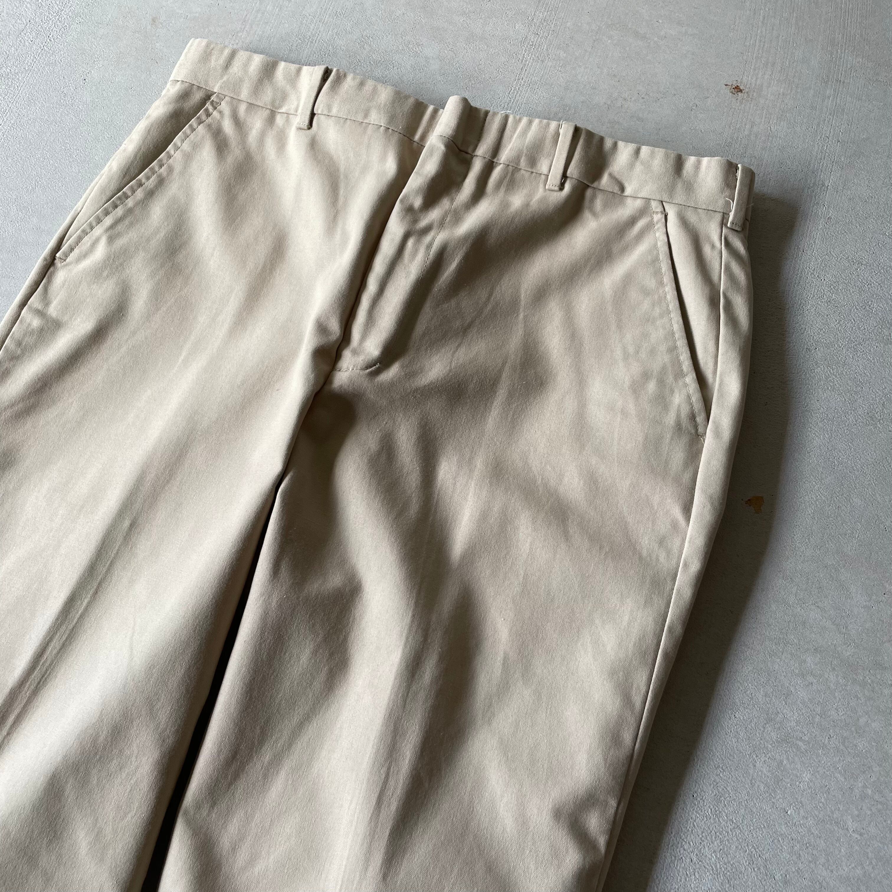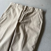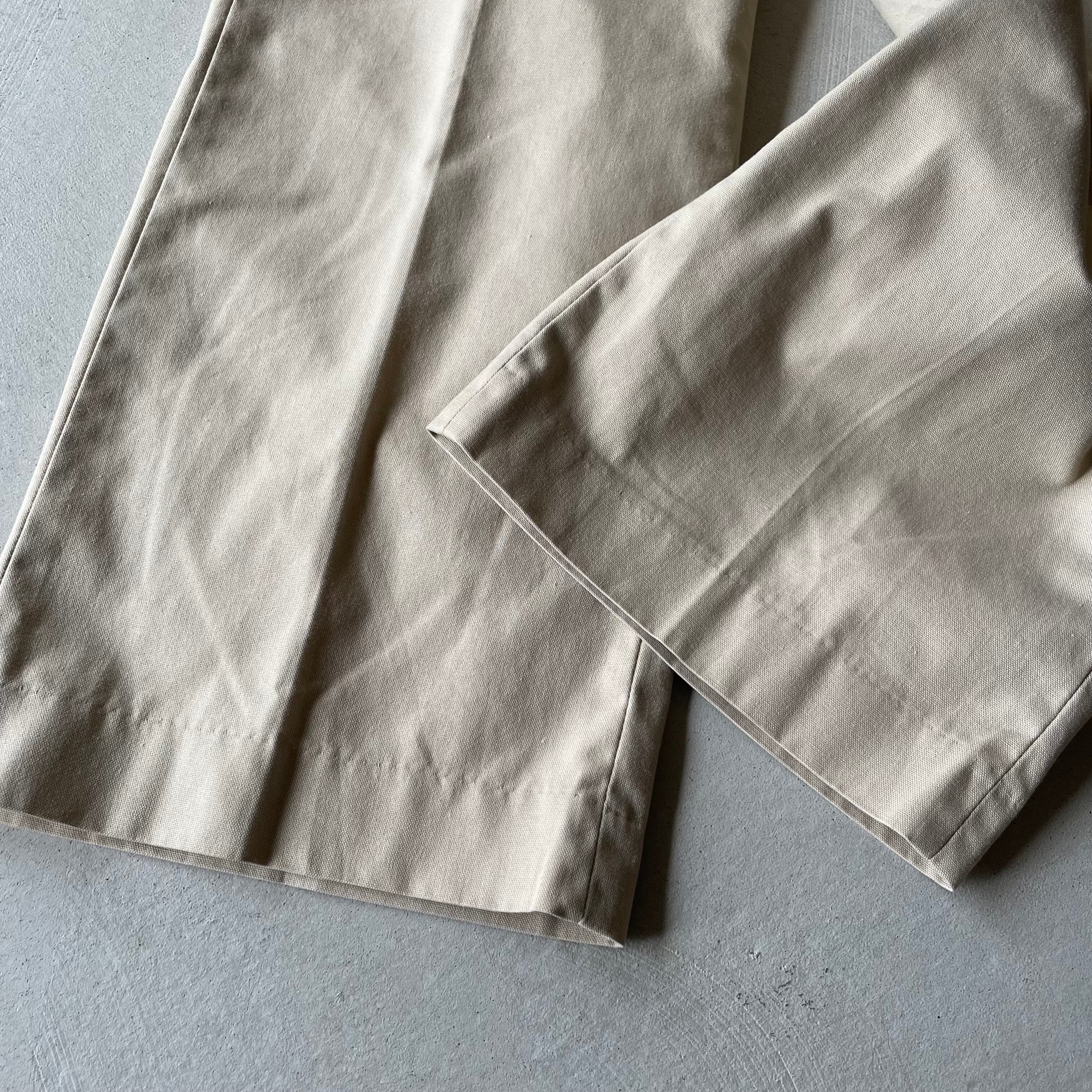 60年代以前のアーミーチノを彷彿とさせるズドンと太いシルエットで、ミリタリーやワークパンツのような無骨な雰囲気もありつつ、コットンスラックスのような上品さも兼ね備えられた良いとこどりのパンツ