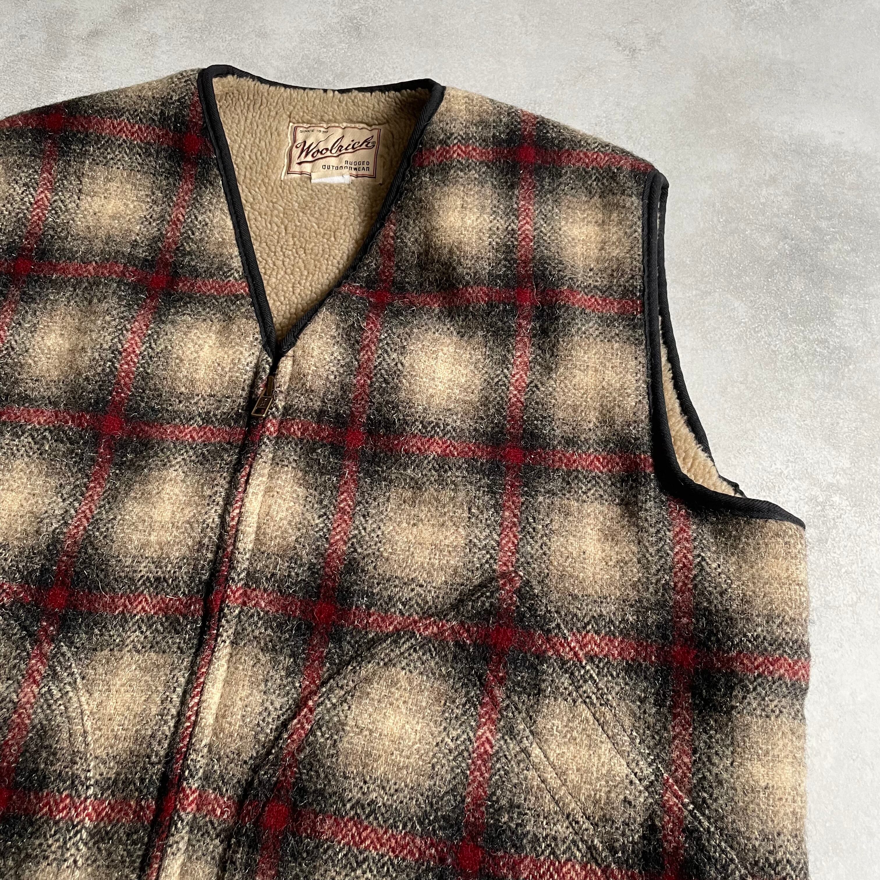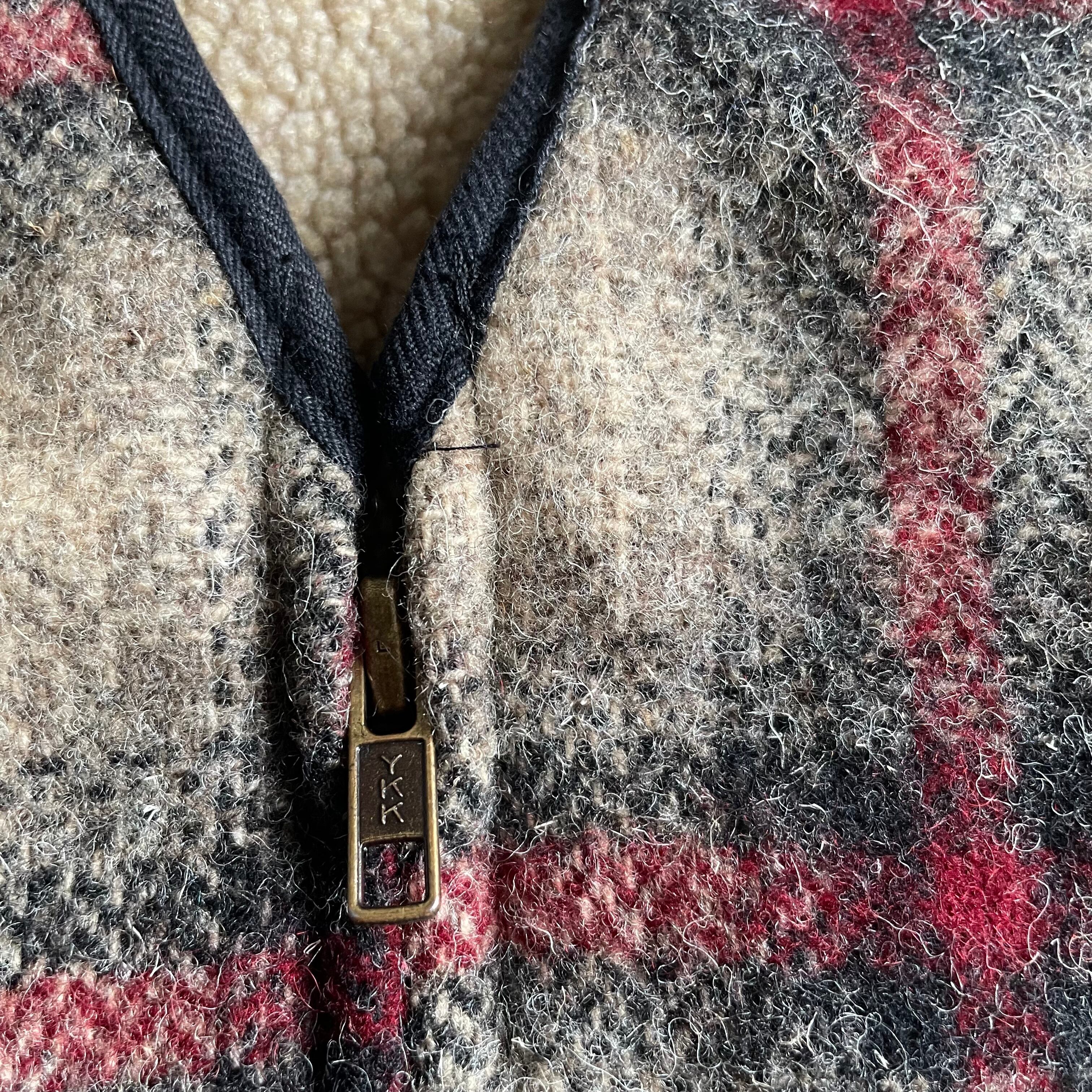 90s Woolrich Ombre check wool / boa vest Made in U.S.A.