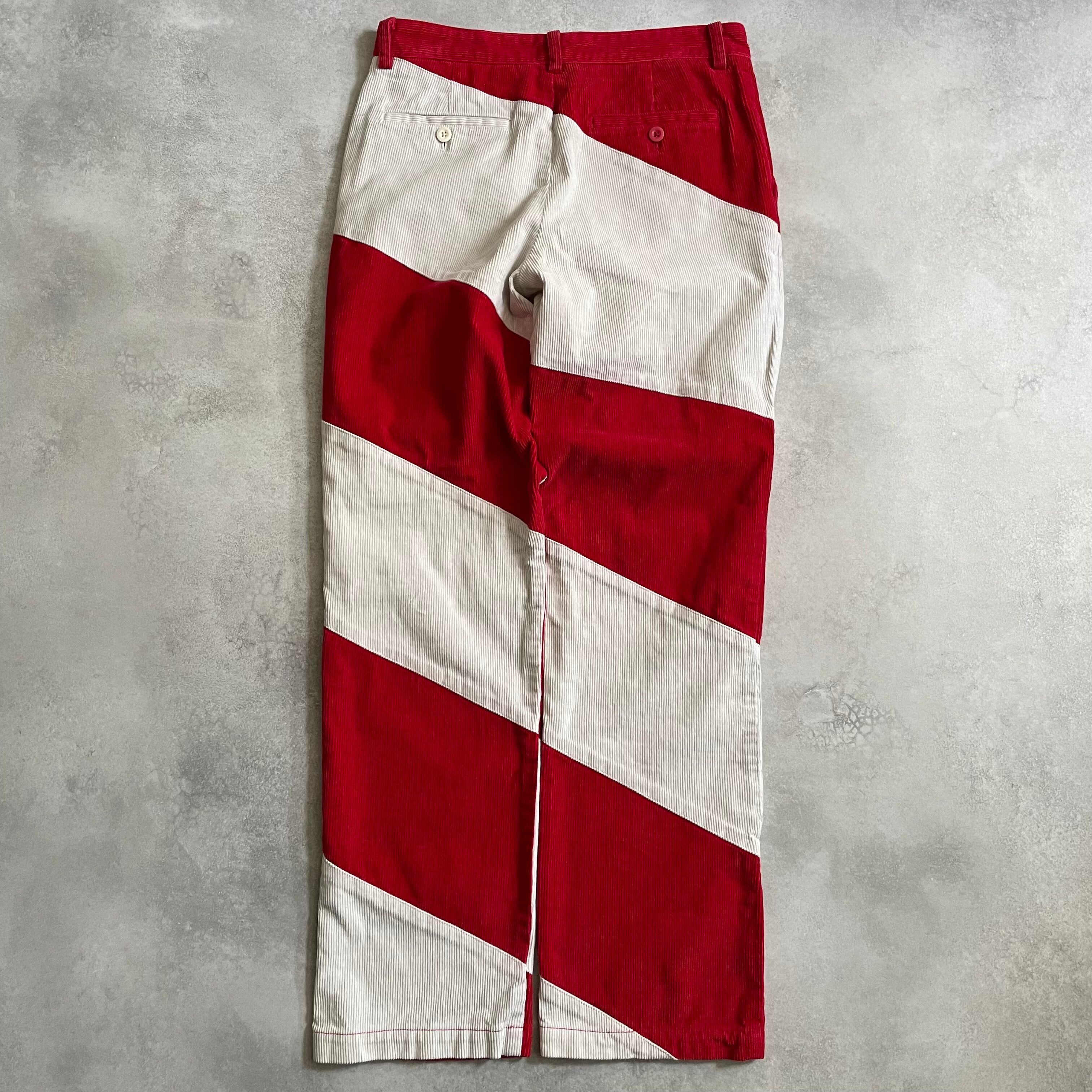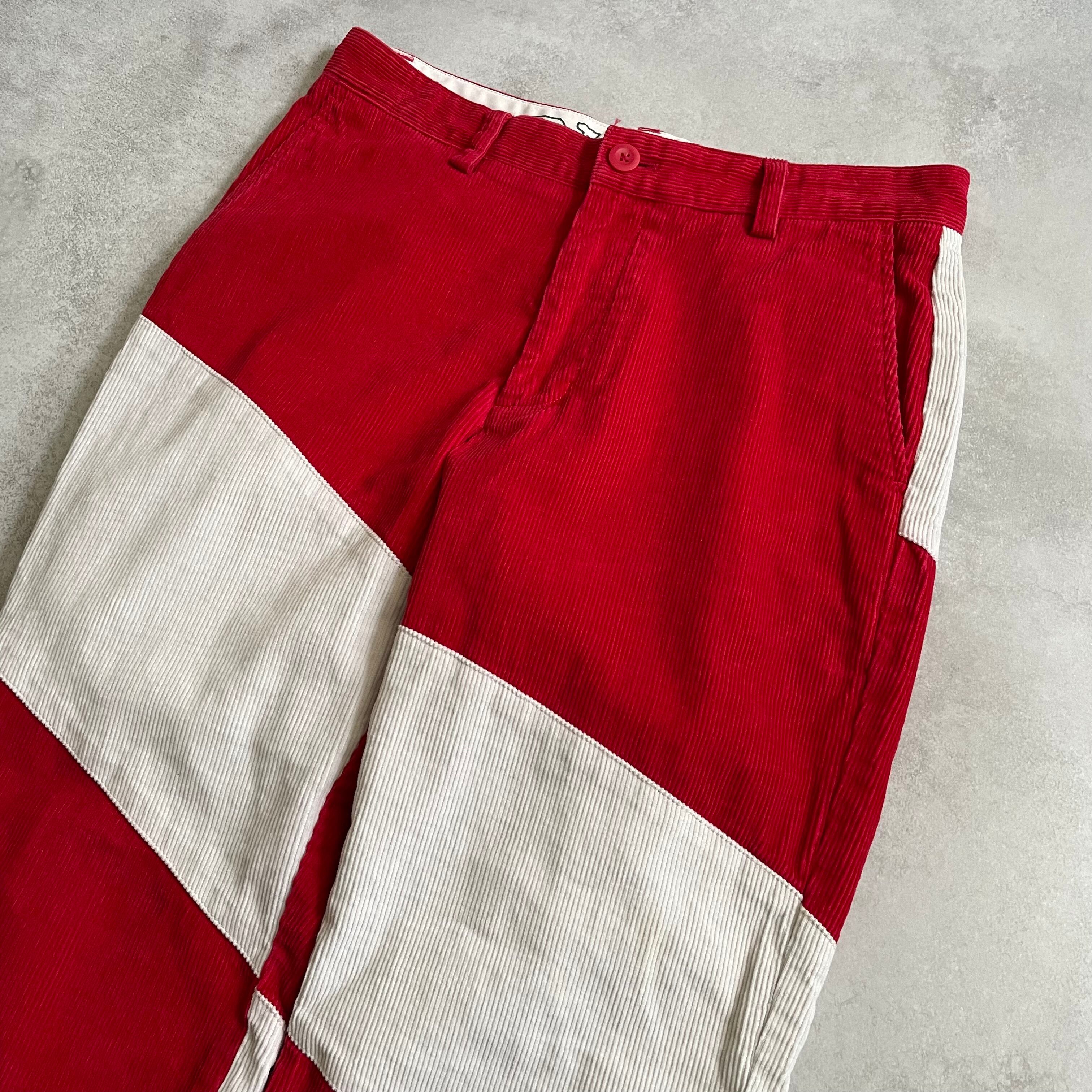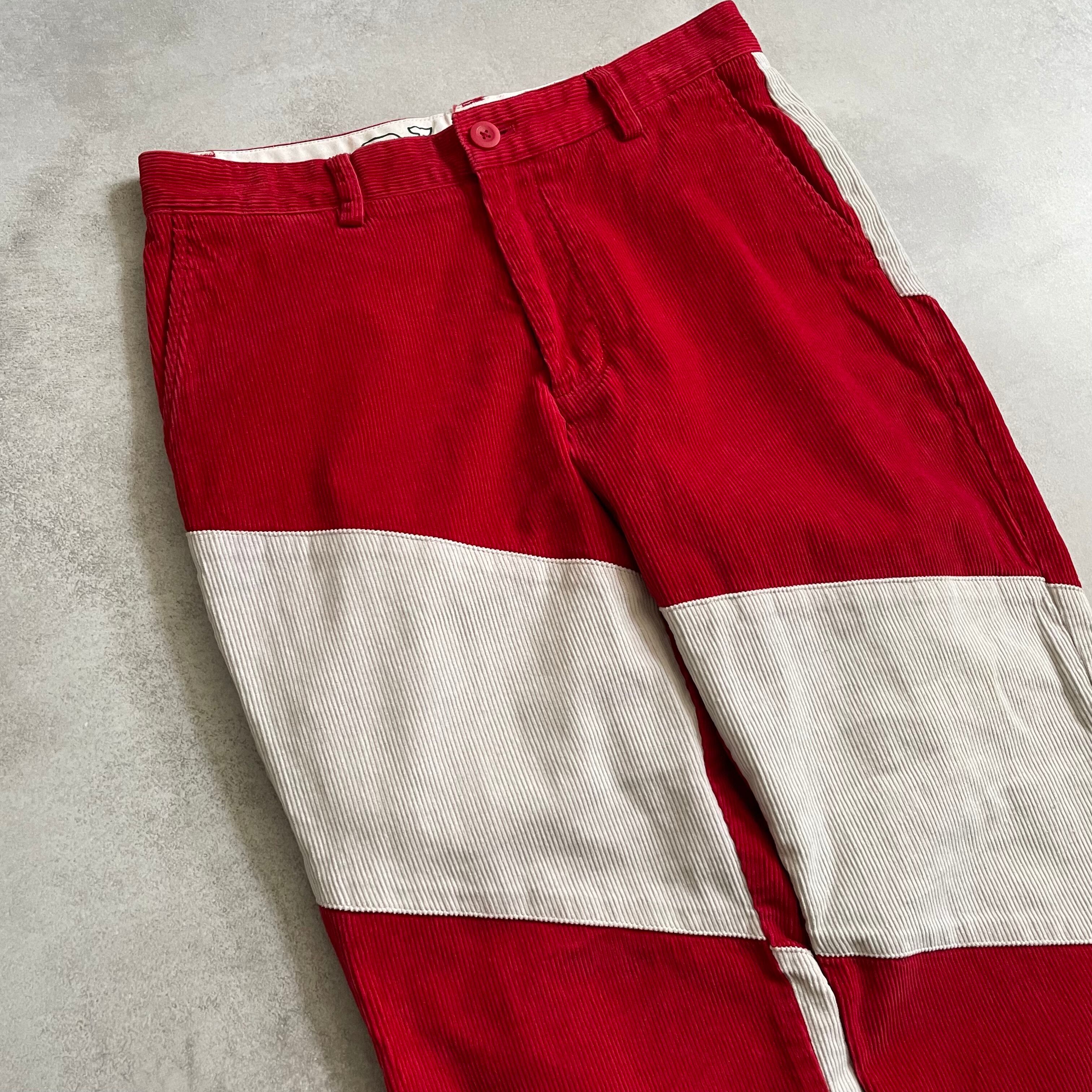 こちらのアイテムは、赤白切り替えのコーズパンツ