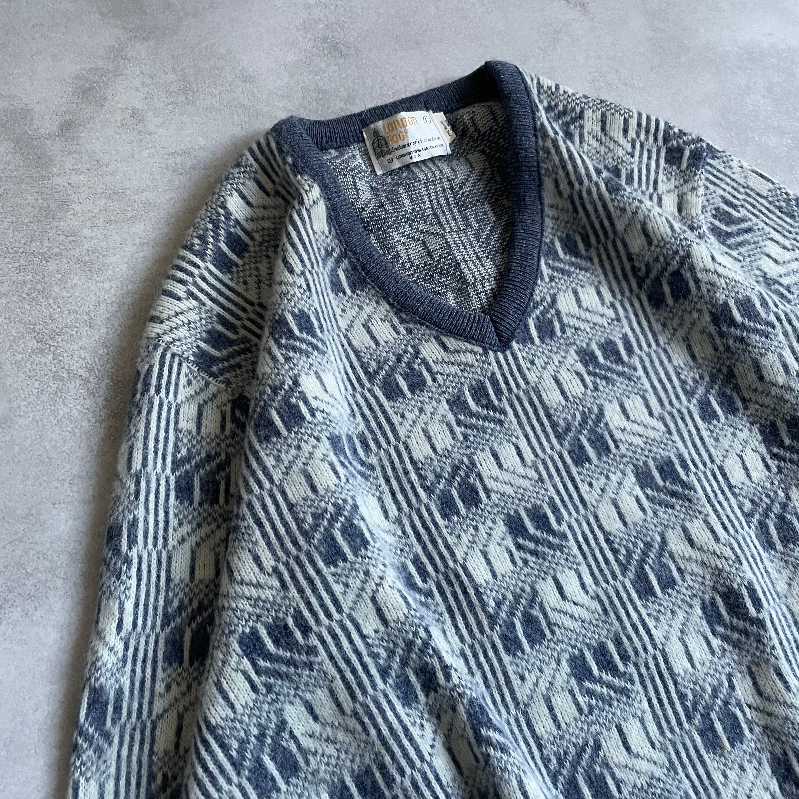 90s London Fog acrylic / wool V neck patterned sweater