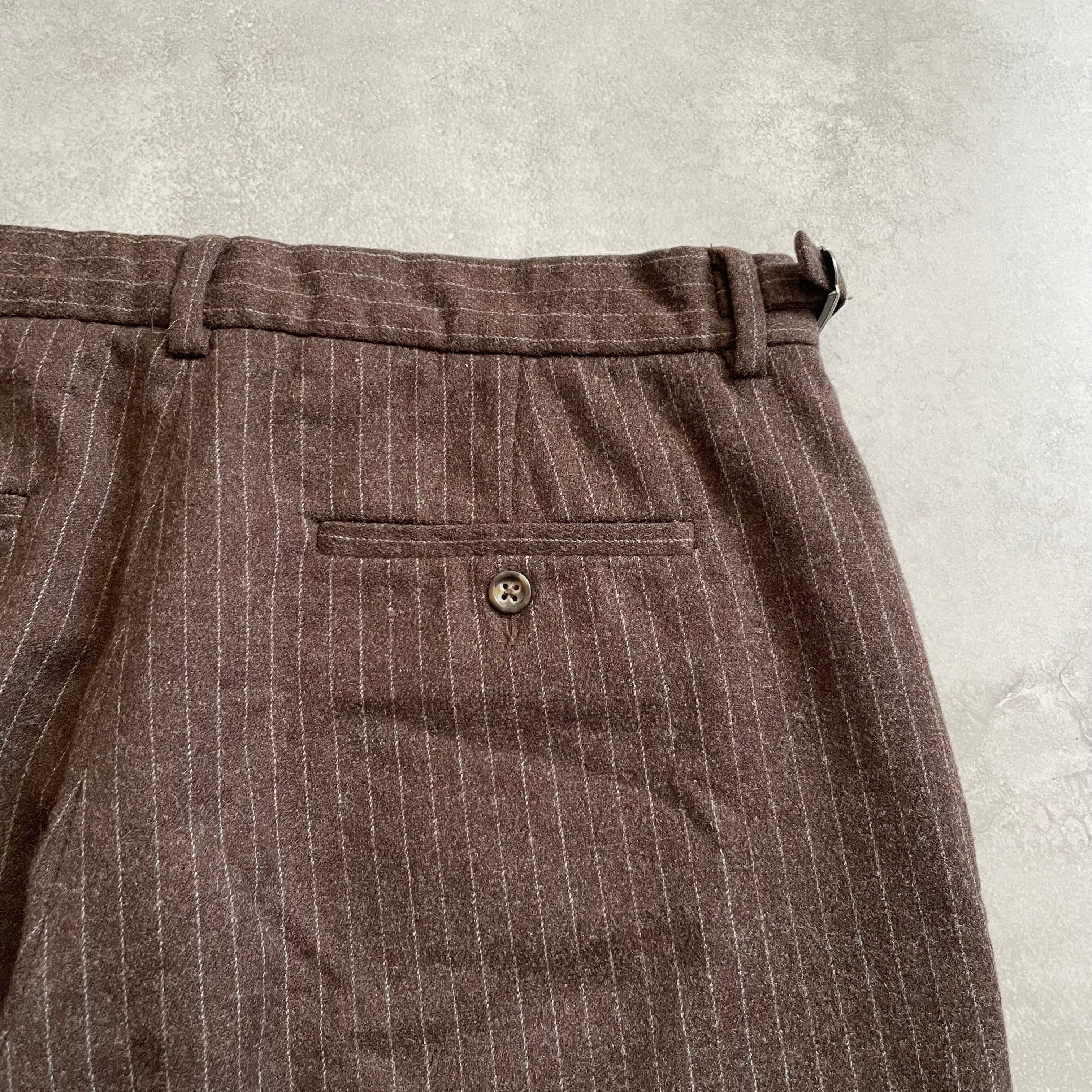 綺麗なブラウンカラーに人気の高いストライプ柄の入るスラックス