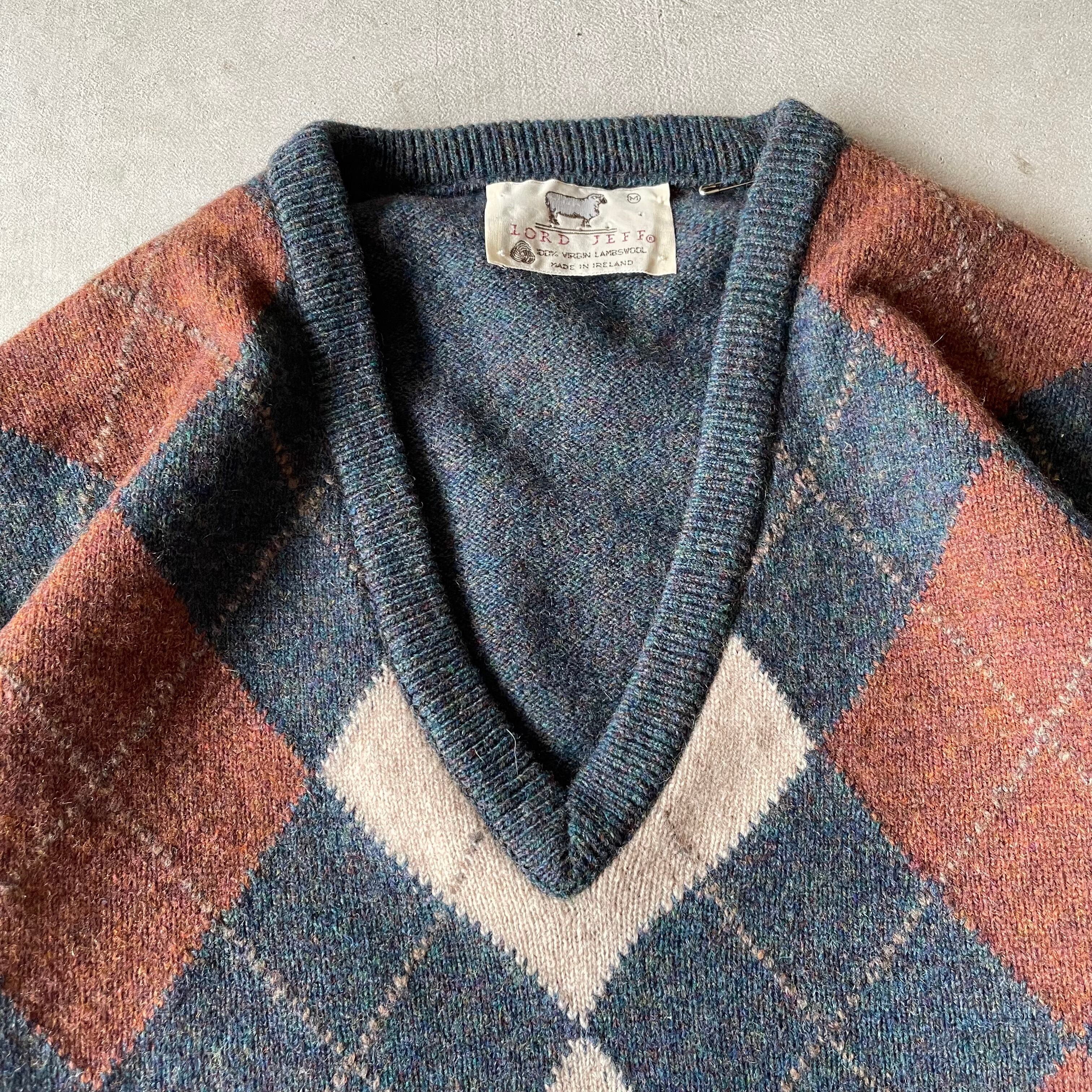 ~80s LORD JEFF Argyle V neck sweater Made in Ireland