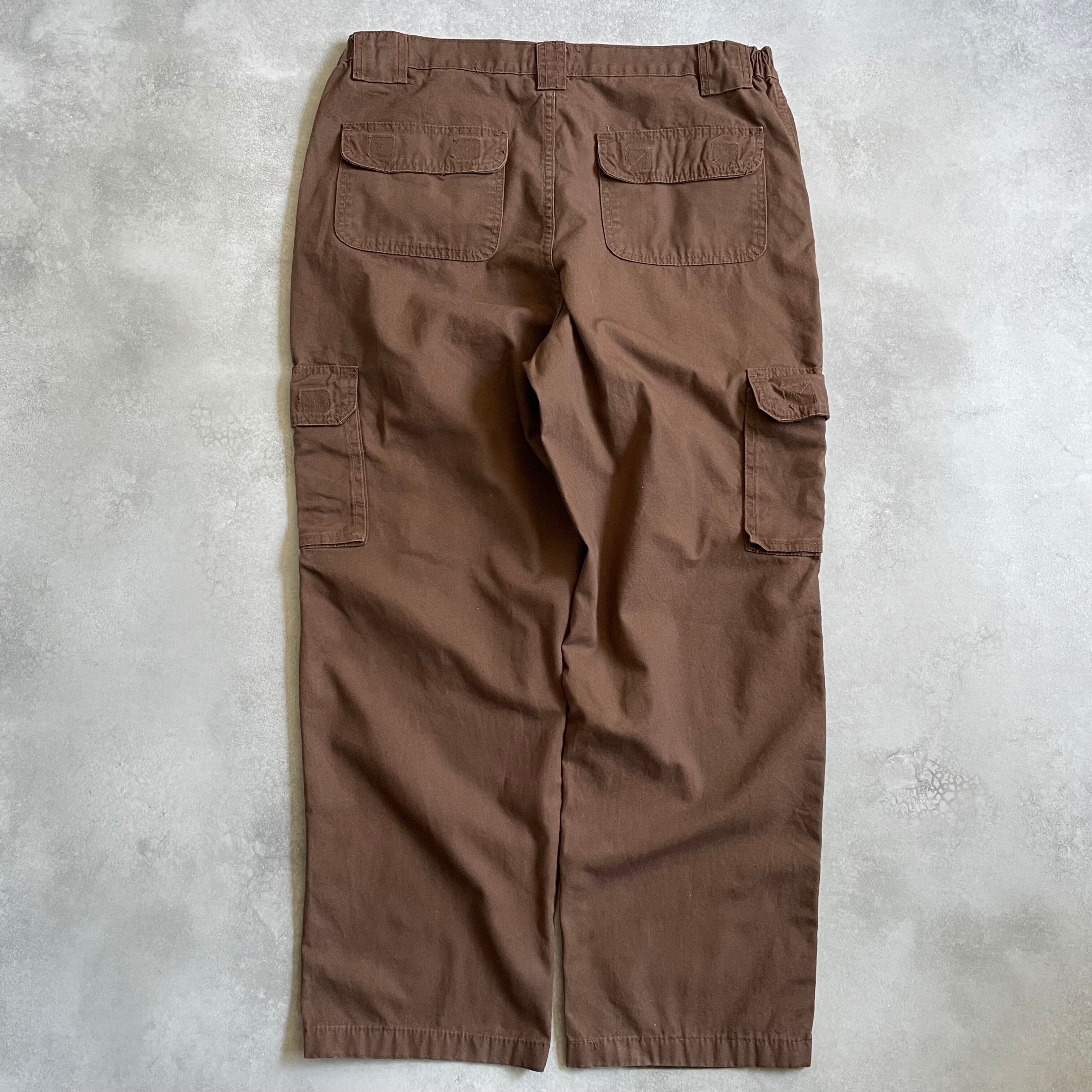 一見普通のカーゴパンツに見えますが、1タック、太いベルトループ、右ももあたりにつく小さいポケット、幅広のバックポケット、ウエストサイドのゴム仕様等、とにかく要素もりもりの面白いパンツ