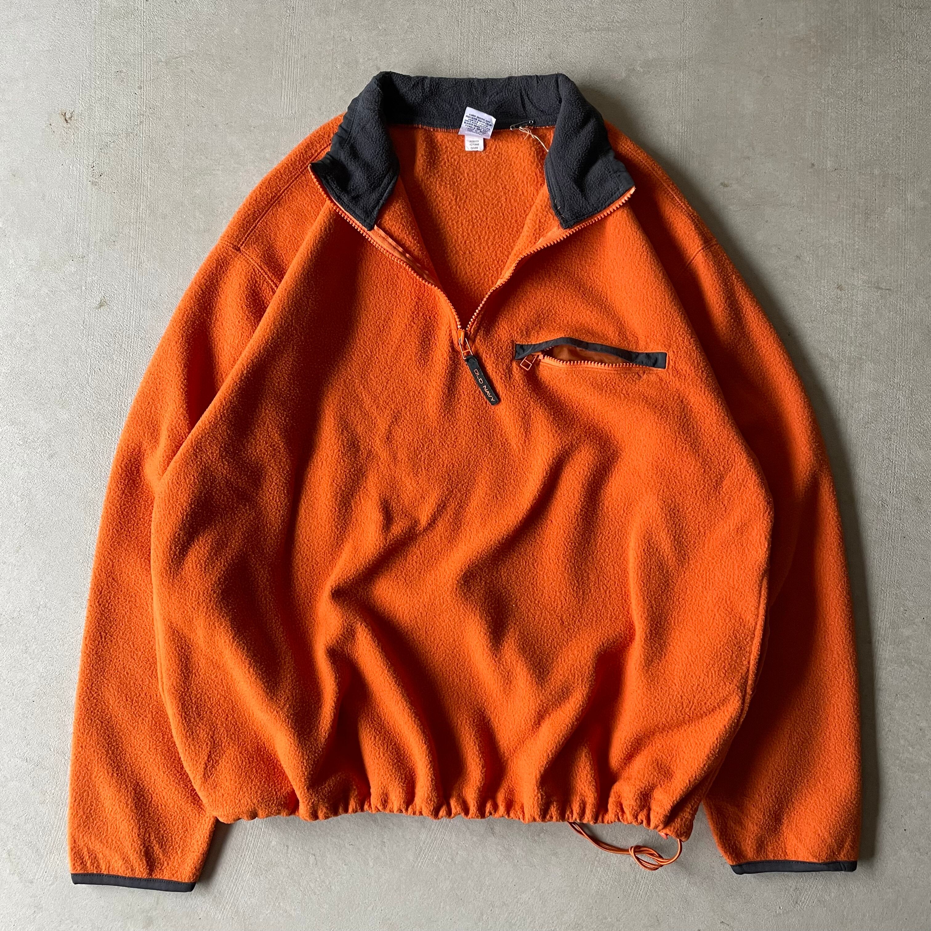 なんてことないハーフジップ仕様のフリースですが、パイピングの配色やジップの持ち手に入るブランドネーム、裾のドローコードなで細かい部分まで凝った作り